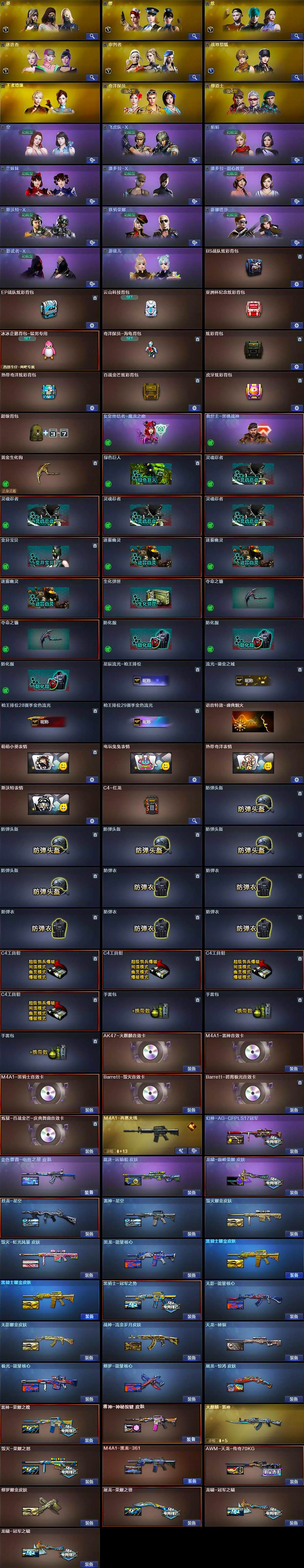 - [14355941]江苏一区-127V-21王者-3炫金 【热门武器】:QBZ03-金色蔷薇,M14EBR-玄武,Scar Light-白虎,HK417-朱雀,M200-幻神,M200-竞技荣光,死亡之眼,荣耀世冠-火麒麟,荣耀世冠-雷神,白虎-电玩蓝兔,荣耀世冠-柯尔特*2,金色小号,C.A.T,M4A1-黑骑士*6,汤姆逊-烈龙*11,RPK-盘龙*6,加特林-炼狱*2,降世魔童,USP-雷暴,COP-堕天神*3,沙鹰-修罗*4,荣耀世冠-龙啸,金刚伞 【王者炫金武器】:炫金骑士,炫金雷神,炫金天龙,王者之魄高爆手雷*3,王者之魄闪光弹*3,王者之魄烟雾弹*4 【音效卡】:M200-幻神音效卡,AK47-火麒麟音效卡,M4A1-雷神音效卡,M4A1-黑骑士音效卡,Barrett-毁灭音效卡,绝迹语音包 【皮肤】:幻神-冠军之幻,幻神-巅峰荣耀,雷神-能量核心,雷神-荣耀之魄,雷神-冠军之魄,雷神-宇航兔皮肤,火麒麟-雷神,火麒麟-冠军之心,火麒麟-华夏之心,火麒麟-平天大圣,火麒麟-百城,毁灭-荣耀之怒,毁灭耀金皮肤,毁灭-CFS2020,黑龙-能量核心,黑龙-冠军之武,黑骑士耀金皮肤,无影-能量核心,AK47-黑武士-361,战神-粉色甜心皮肤,AK47-B-常胜将军-曹操*2,天龙-秘银,极光-能量核心,炼狱-星空,修罗-冠军之魂,屠龙-荣耀之锋,龙啸-冠军之啸 【角色】:樱,魅影,迷迭香,电竞教官-云悠悠,鹰,王者-瞳-闭月羞花,王者樱-热浪之夏,王者-迷迭香,炽天使,初恋灵狐,风暴女*2,嘉年华灵狐,零-热舞青春,灵狐者-X,灵狐者-黄金海岸,灵狐者-七夕宝贝,龙儿,潘多拉-X,潘多拉-甜心教官,潜龙队-X,铁骑荣耀,新娜塔莎,影武者-X,职业选手 【人偶武器】:天龙-曼陀罗,M4A1-雷神-精英刀锋,巴雷特-零-水下丽影,AWM-灵狐-15周年嘉年华,C.A.T,迷你深渊冰龙,夺魂,迷你生化手雷,闪光弹-小乔,闪光弹-貂蝉,高爆手雷-大乔,迷你超能女侍,降世魔童 【暴走生化】:死亡之眼,超级对讲机 【挑战大师】:阐释者III 【英雄级武器】:AK47-火麒麟*2,M4A1-黑龙*2,M4A1-雷神*4,M4A1-黑骑士*6,M4A1-死神,AK47-黑武士,AK12-天启,AN94-超新星,M4A1-龙血*2,M4A1-堕天神,HK417-朱雀,Scar Light-白
