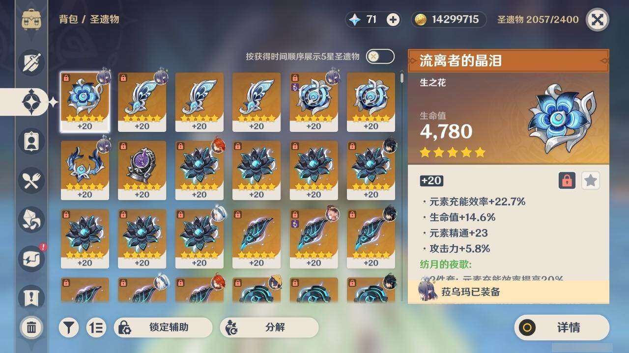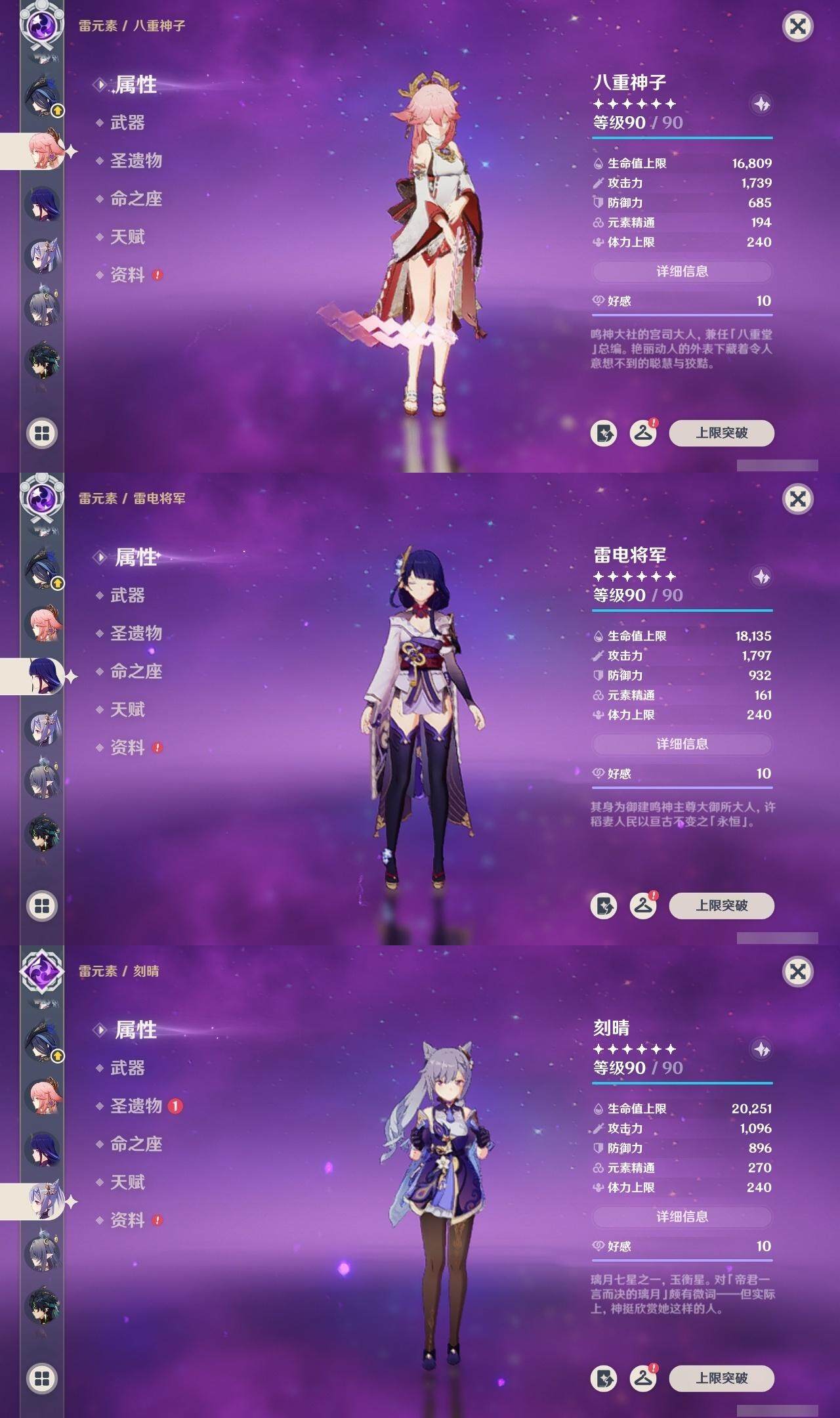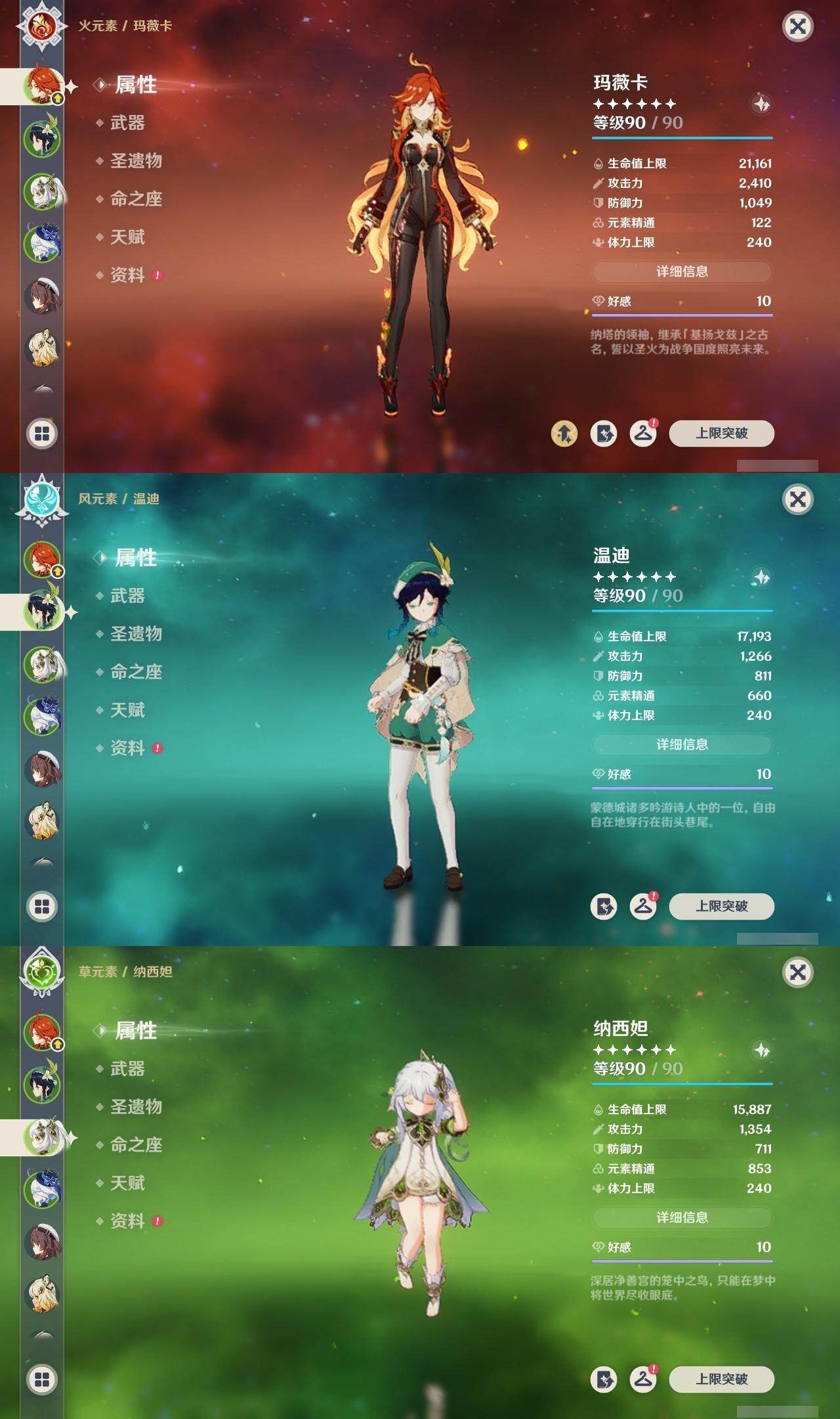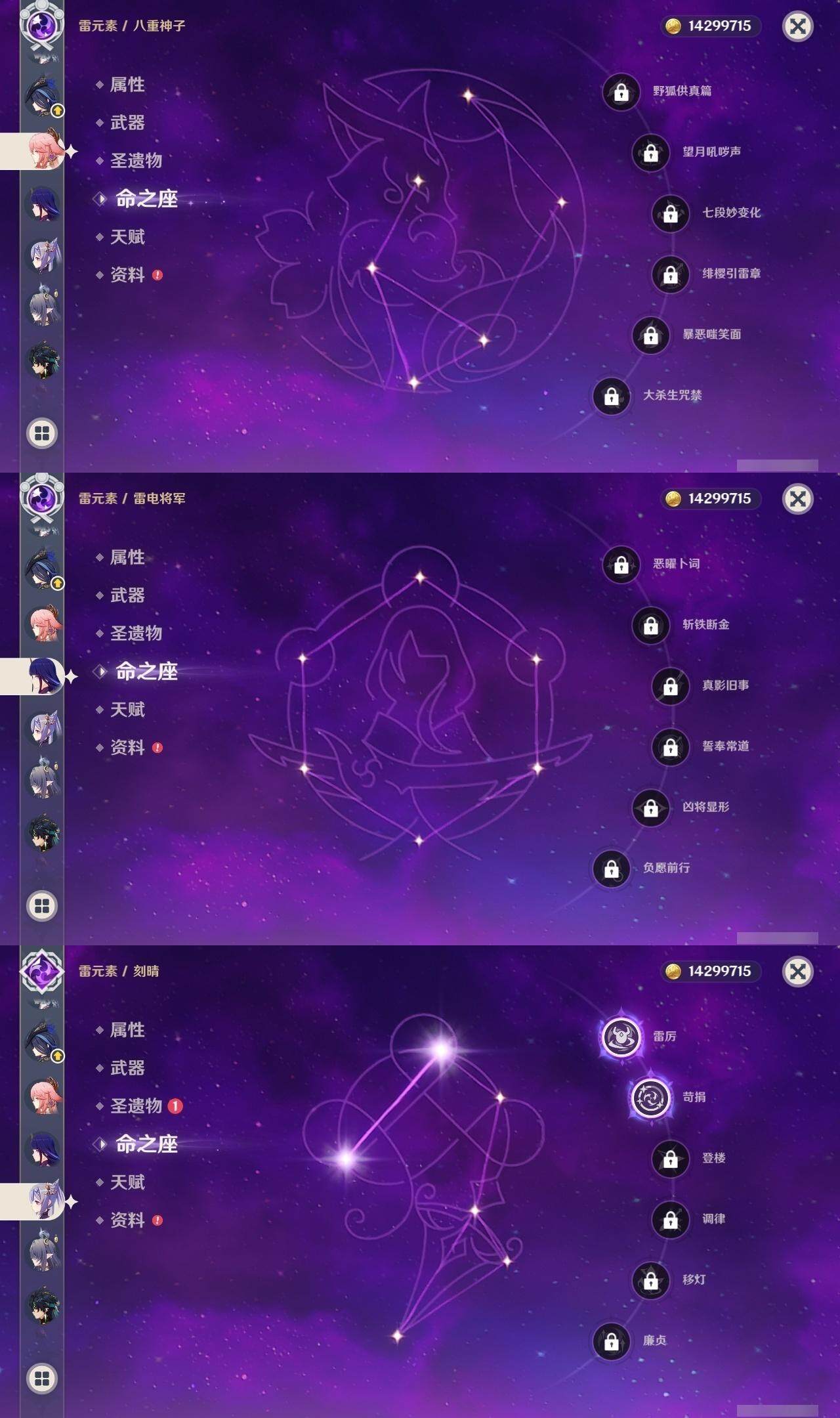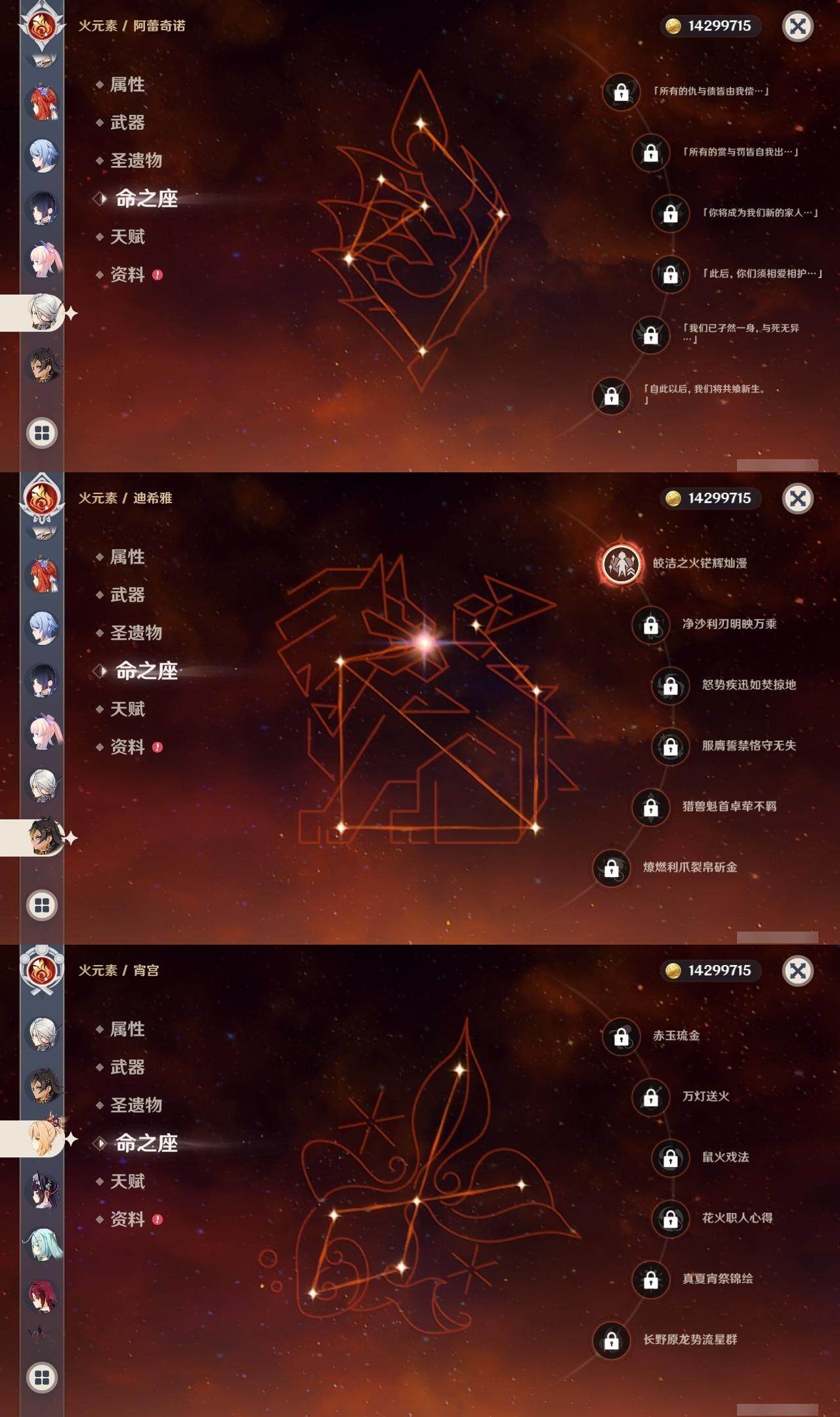 0命克洛琳德,0命阿蕾奇诺,0命闲云,2命芙宁娜,0命莱欧斯利,2命那维莱特,1命迪希雅,1命流浪者,0命纳西妲,0命妮露,满命提纳里,1命夜兰,0命神里绫人,0命八重神子,1命申鹤,0命雷电将军,0命枫原万叶,0命神里绫华,0命钟离,1命胡桃,0命甘雨,0命宵宫,0命温迪,0命阿贝多,0命珊瑚宫心海,2命刻晴,0命七七,满命琴,3命莫娜,3命迪卢克,0命基尼奇,2命希诺宁,1命玛拉妮,0命玛薇卡,0命茜特菈莉,0命菈乌玛,精1静水流涌之辉,精1金流监督,精1万世流涌大典,精1裁叶萃光,精1千夜浮梦,精1若水,精1薙草之稻光,精1飞雷之弦振,精1雾切之回光,精3护摩之杖,精3和璞鸢,精1天空之脊,精2天空之翼,精1阿莫斯之弓,精1天空之刃,精1天空之傲,精1岩峰巡歌,精1山王长牙,精1冲浪时光,精1纺夜天镜