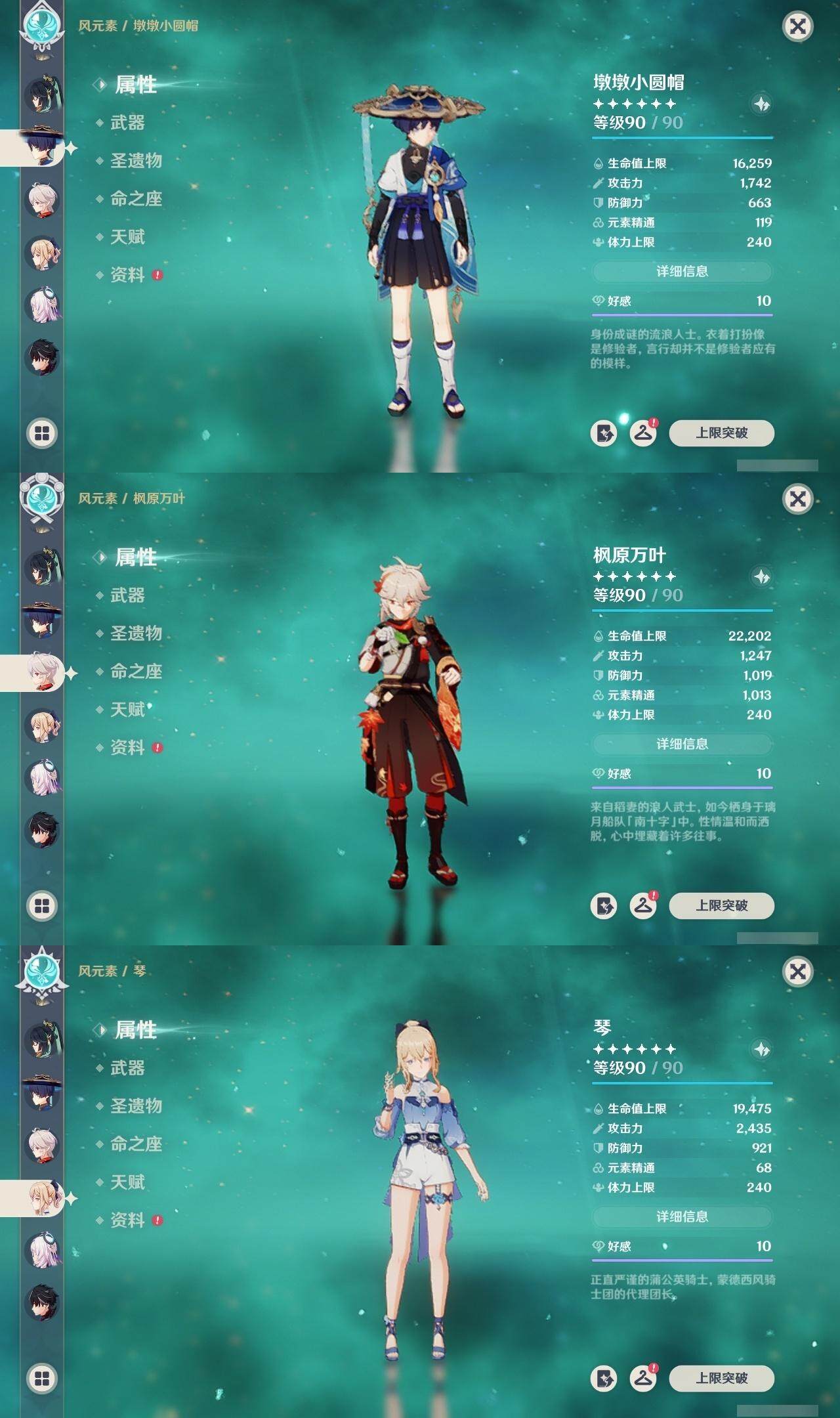 温迪,胡桃,阿贝多,钟离,枫原万叶,琴,申鹤,甘雨,神里凌华,八重神子,雷电将军,刻晴,珊瑚宫心海,宵宫,七七,莫娜,迪卢克