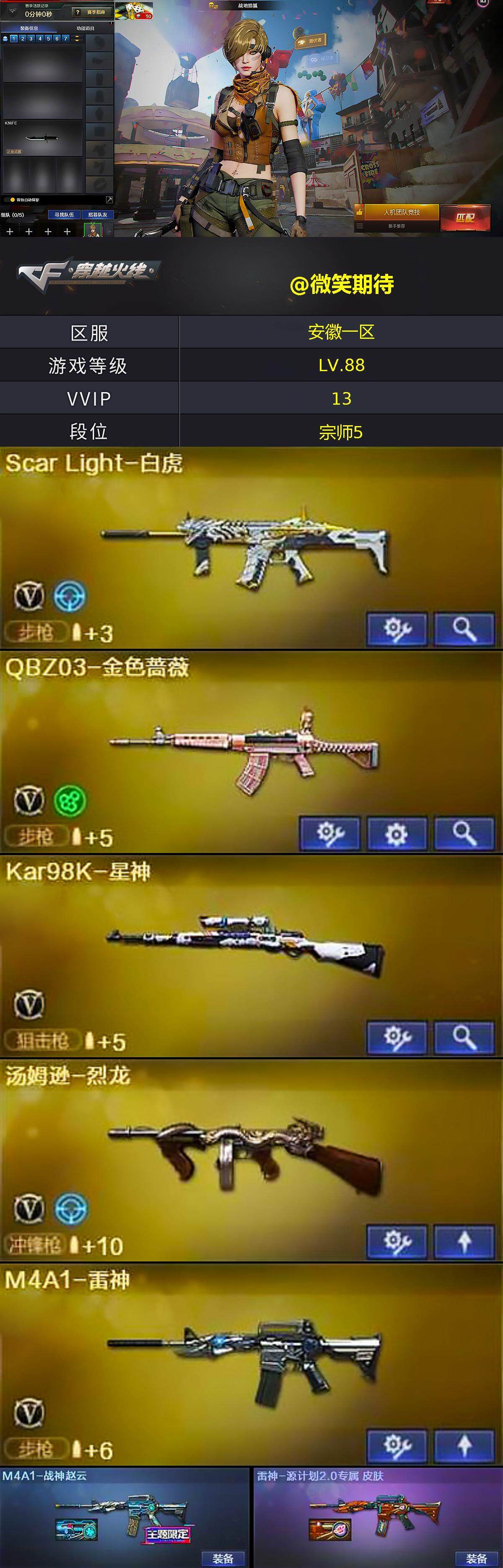 - PX_2063476-实名: 可修改 贵族等级: V7 v武器: 81式-光明之神,AK47-血武士,AK47-雷麒麟,AK47-亚龙,AK47-机械迷城,AK47-冰魂觉醒,AK47-游骑兵,AK12-天启,M4A1-玫瑰精灵,M4A1-死神,M4A1-黑龙,AK47-麒麟,M4A1-黑骑士,AK47-无影,M4A1-雷神,AK47-火麒麟,巴雷特-枪娘,巴雷特-极光,巴雷特-毁灭,AWM-天龙