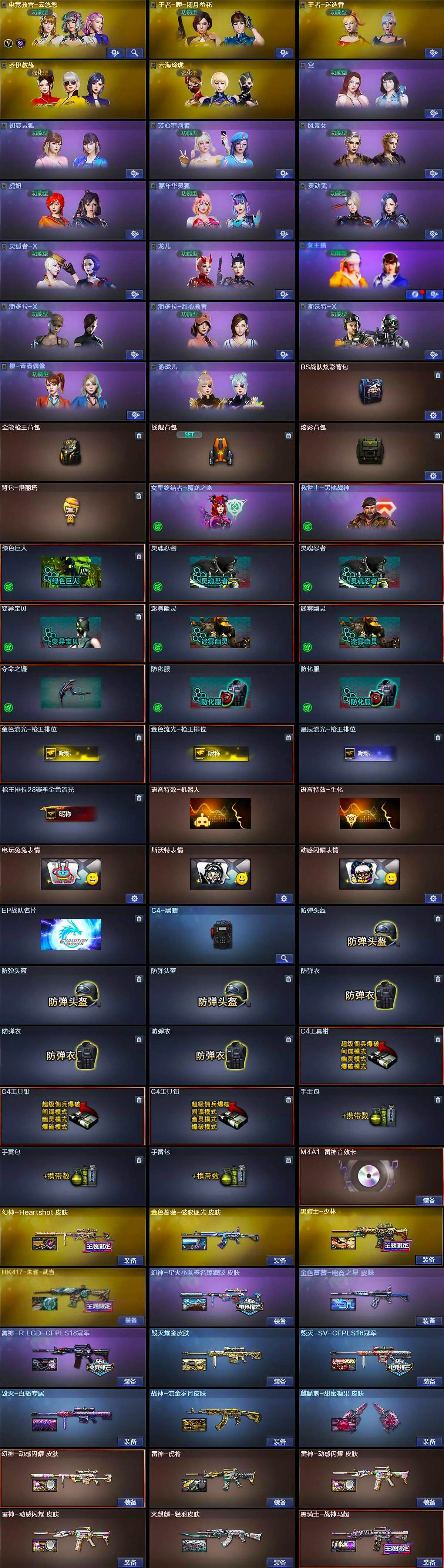 【皮肤】:幻神-动感闪耀 皮肤,幻神-Heartshot 皮肤,幻神-星火小队签名臻藏版 皮肤,金色蔷薇-破浪逐光 皮肤,金色蔷薇-电竞之星 皮肤,雷神-虎将,雷神-R.LGD-CFPLS18冠军,雷神-动感闪耀 皮肤*2,火麒麟-轻羽皮肤,毁灭耀金皮肤,毁灭-SV-CFPLS16冠军,毁灭-英雄计划 皮肤,黑骑士-战神马超,黑骑士-少林,HK417-朱雀-武当,战神-流金岁月皮肤,AK47-B-常胜将军-刘备*2,麒麟刺-甜蜜糖果 皮肤
