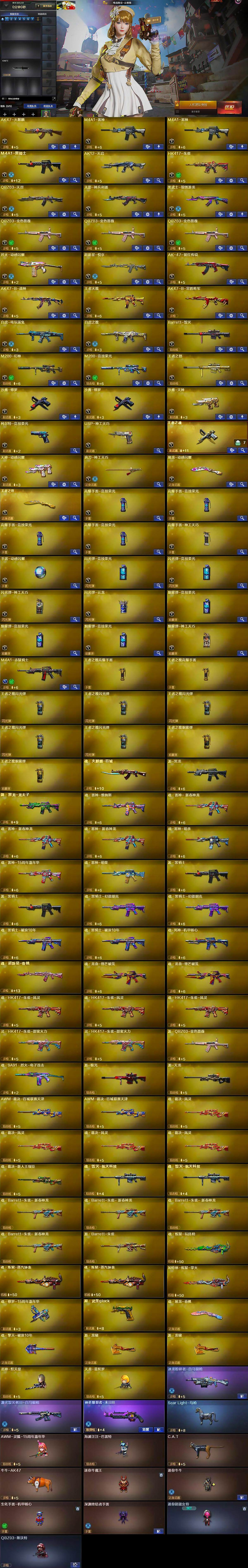 【人偶武器】:星神-炽天使,天龙-曼陀罗,Scar Light-马枪,AWM-灵狐-15周年嘉年华,海滩汪汪-巴雷特,C.A.T,牛牛-AK47,迷你牛魔王,迷你牛牛,生化手雷-机甲核心,深渊终结者手雷,迷你超能女侍,QBZ03-斯沃特,灵狐娃娃手雷*2