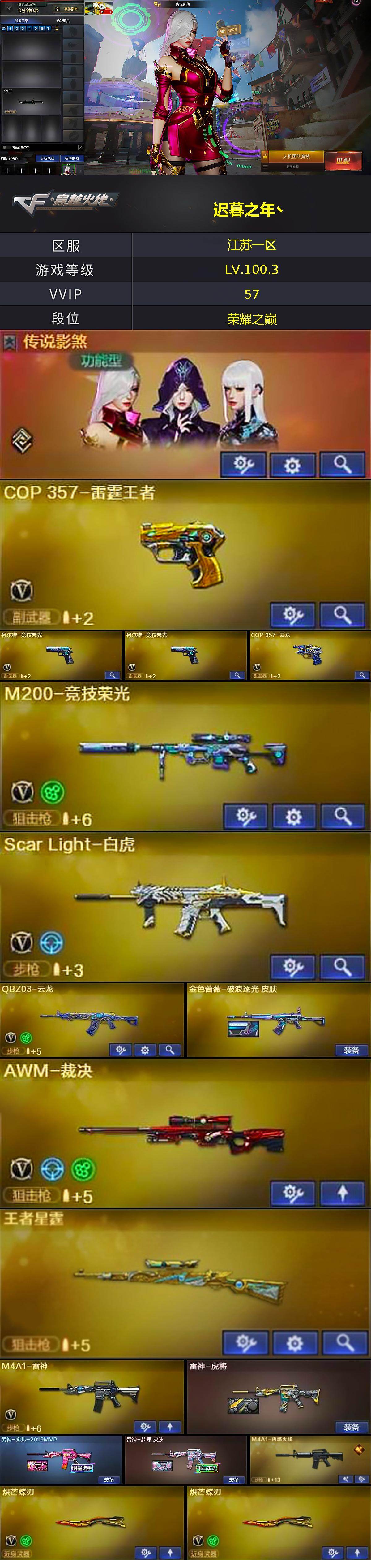 - [15243266]上海一区-27V-2王者-0炫金 【热门武器】:QBZ03-金色蔷薇,M200-幻神,加特林-炼狱,雷神-小红,COP-白鲨,COP 357-幻灵 【音效卡】:擎天-云海游龙音效卡 【皮肤】:幻神-AG-CFPLS17冠军,幻神-纸灯龙皮肤,幻神-荣耀世冠白鲨2023 皮肤,QBZ03-AG-CFPLS19冠军,金色蔷薇-纸灯龙皮肤,裁决-流光秘银,星神-傲竹金蛇 皮肤,毁灭-战神张飞,修罗-能量核心*3 【角色】:王者凌霄,云海玲珑,风暴女,嘉年华灵狐,猎狐者-追月,灵狐者-七夕宝贝,灵狐者-职业经理,潘多拉-X,铁骑荣耀 【人偶武器】:雷神-小红,COP-白鲨,巴雷特-零-水下丽影,AWM-灵狐-15周年嘉年华,迷你深渊冰龙 【暴走生化】:黑龙吞噬者 【挑战大师】:激光毁灭者III-白马银枪,激光毁灭者III 【英雄级武器】:AN94-超新星,无影-神兵利器,QBZ03-金色蔷薇,王者白虎-觉醒版,Barrett-毁灭,AWM-裁决,M200-幻神,加特林-炼狱,AA-12-雷霆,COP 357-幻灵,屠龙,麒麟刺,幻灵之锋,唐刀-神工天巧,高爆手雷-幻灵*2,高爆手雷-神工天巧,闪光弹-幻灵*3,闪光弹-神工天巧,烟雾弹-幻灵*4,烟雾弹-神工天巧*2,M4A1-赤狱骑士 【道具】:全能枪王背包,女皇终结者-魔龙之吻,救世主-黑桃战神,夺命之镰,防化服,金色流光-枪王排位*2,星辰流光-枪王排位,枪王排位29赛季金色流光,动感闪耀表情,防弹头盔*2,防弹衣*2,C4工具钳*2,手雷包*2 【特殊枪械】:1炼狱