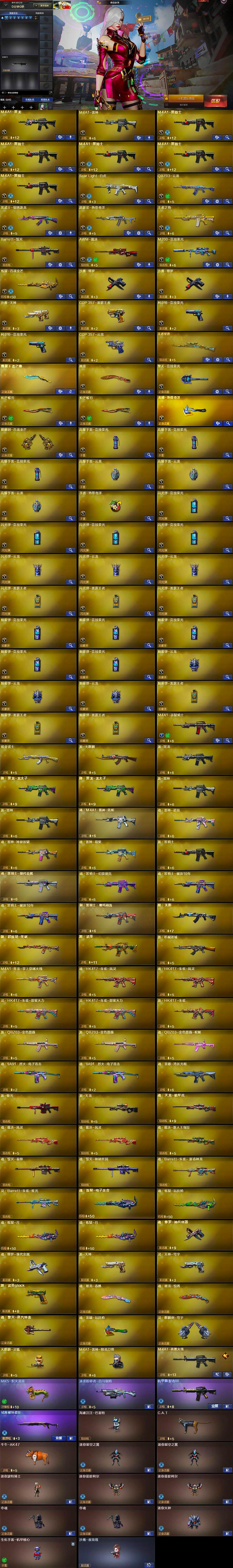 【热门武器】:Scar Light-白虎,M200-竞技荣光,C.A.T,牛牛-AK47,M4A1-黑骑士*5,MK5-炽火炎龙,沙鹰-修罗*2,炽芒蝶刃*2,炽芒蝶刃-破浪逐光 皮肤