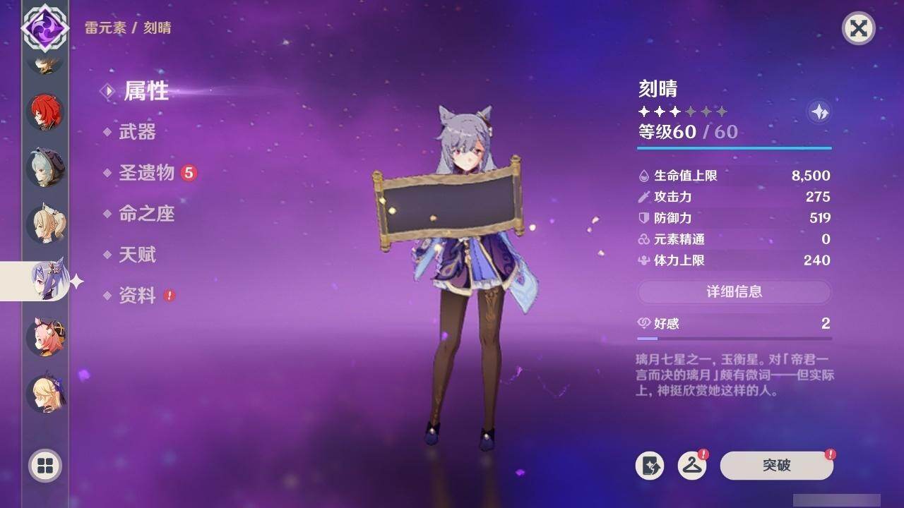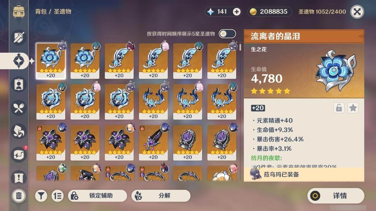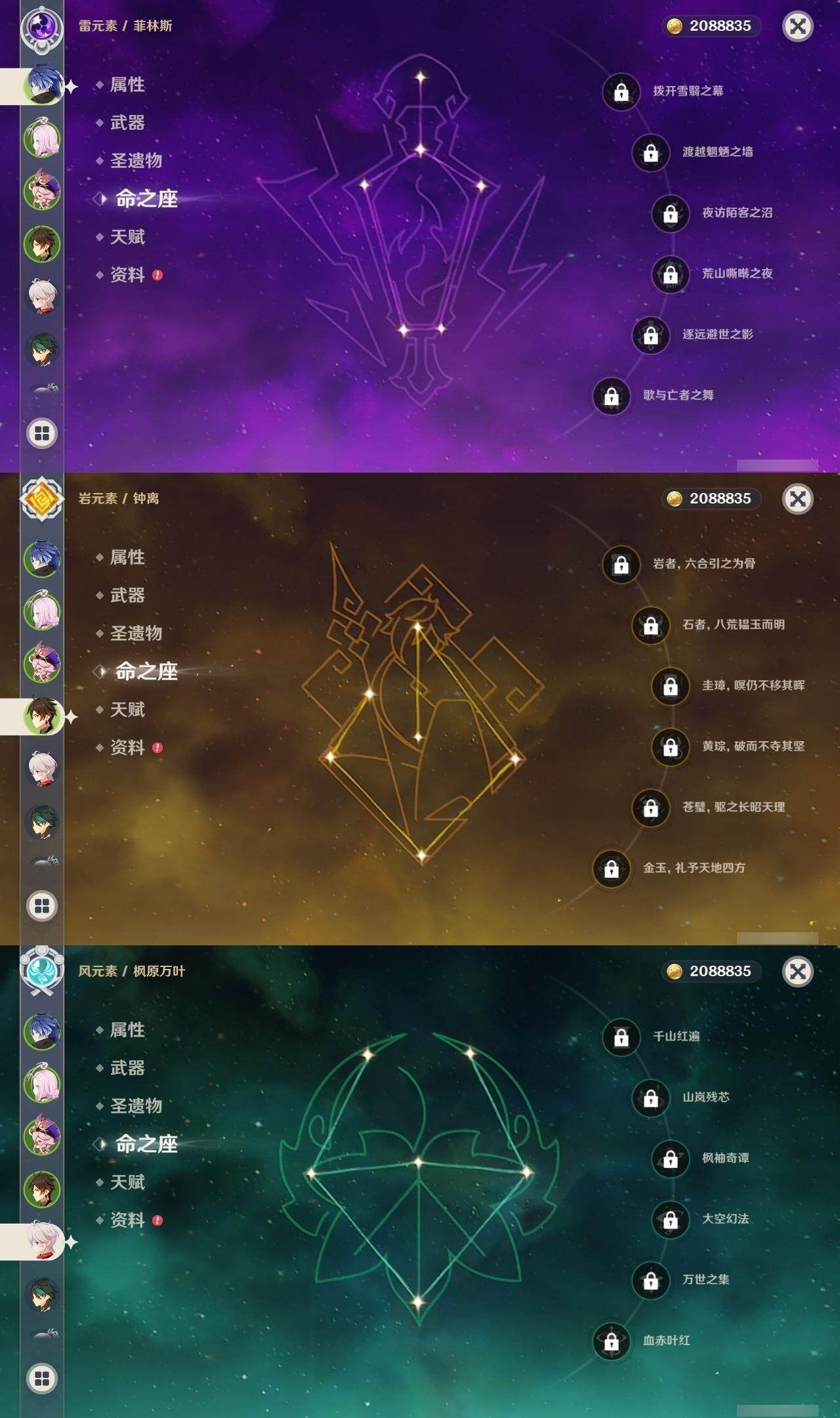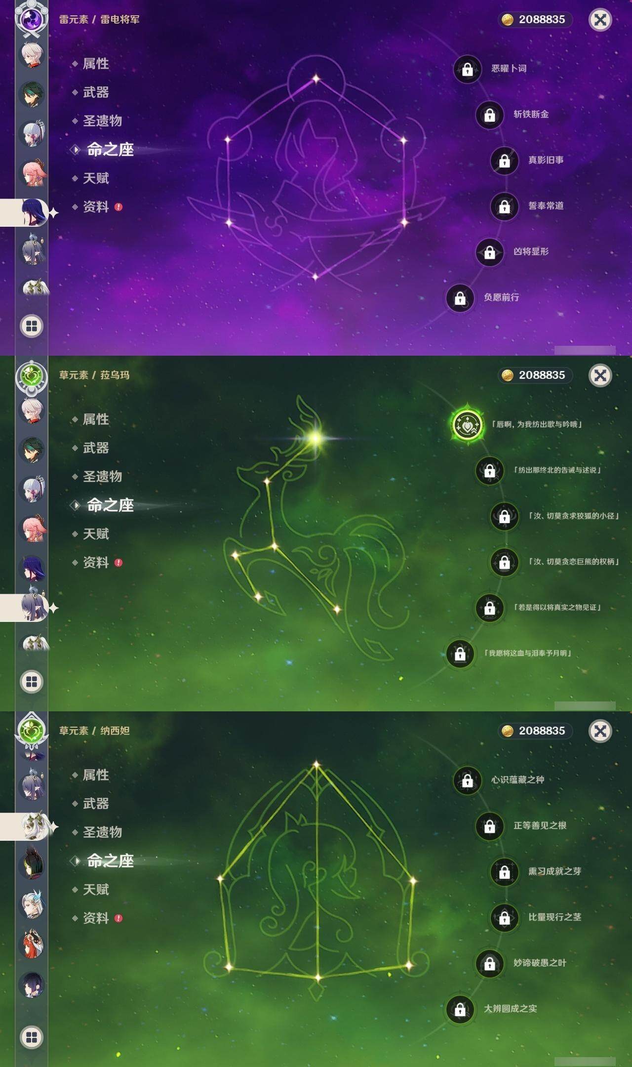 0命那维莱特,0命纳西妲,1命妮露,0命赛诺,1命提纳里,1命夜兰,0命八重神子,0命雷电将军,0命枫原万叶,0命神里绫华,0命钟离,0命魈,0命珊瑚宫心海,1命刻晴,1命琴,1命莫娜,4命迪卢克,1命菈乌玛,0命菲林斯,精1波乱月白经津,精1和璞鸢,精1天空之刃,精1天空之卷,精1风鹰剑