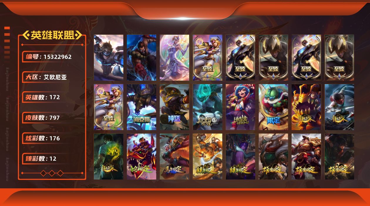 [15322962]可二次【特价出售/店主推荐】青铜段位-172英雄-797皮肤-176炫彩-3终极-10神话-170限定-62传说-205史诗