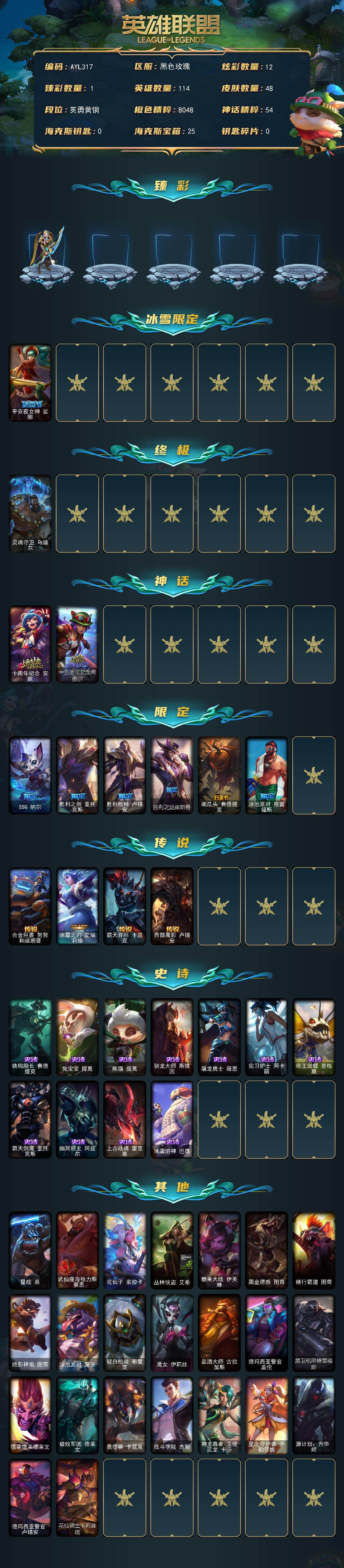 [15323163]可二次【特价出售/店主推荐】青铜段位-114英雄-48皮肤-12炫彩-1终极-2神话-7限定-4传说-11史诗