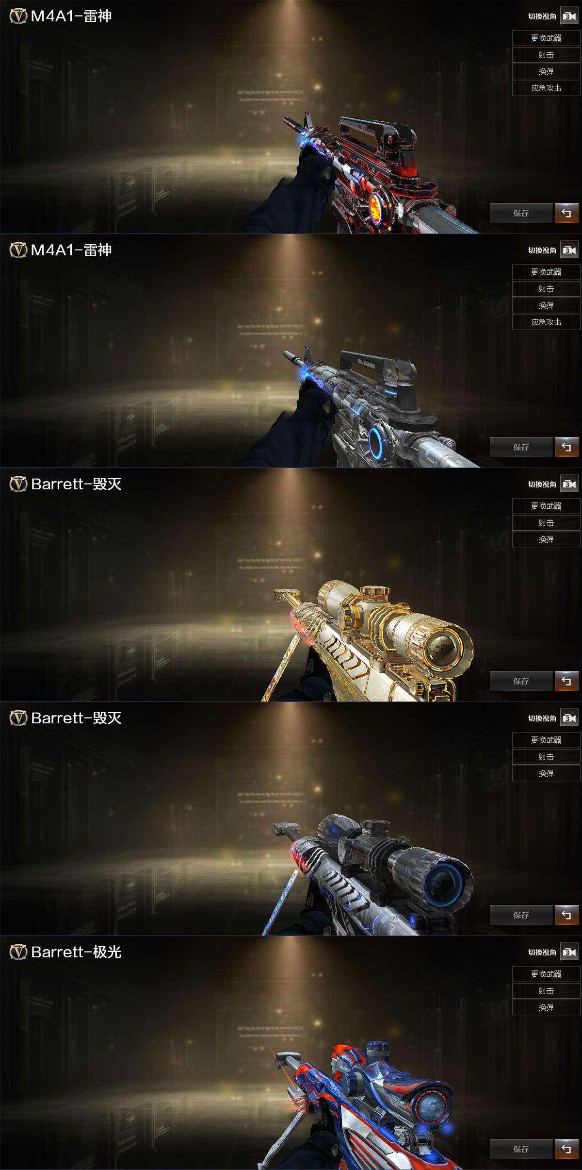 【音效卡】:AK47-火麒麟音效卡,M4A1-雷神音效卡,M4A1-黑骑士音效卡,Barrett-毁灭音效卡