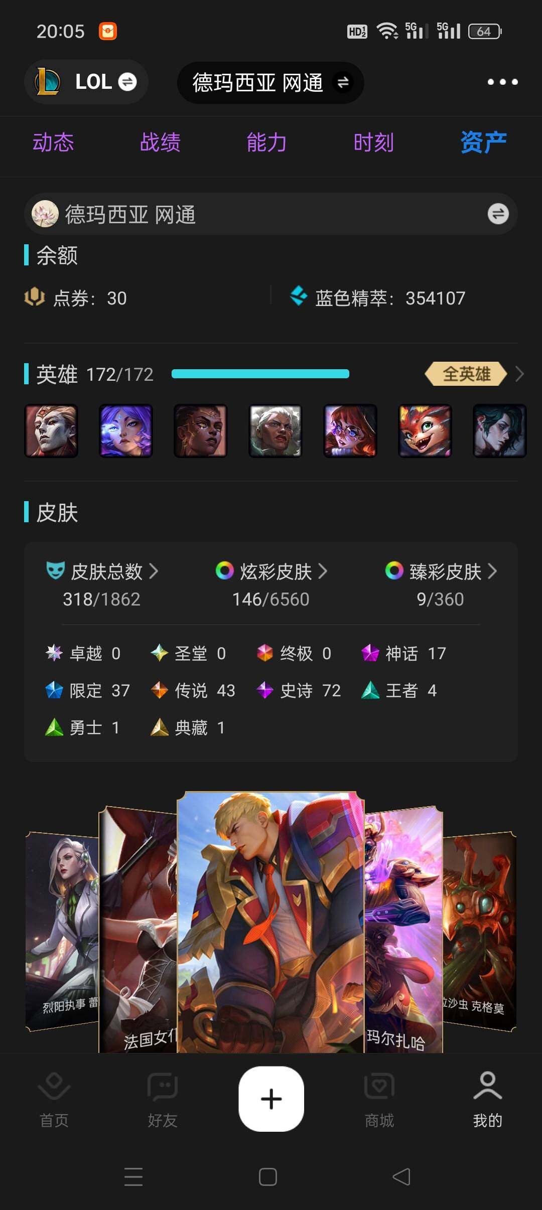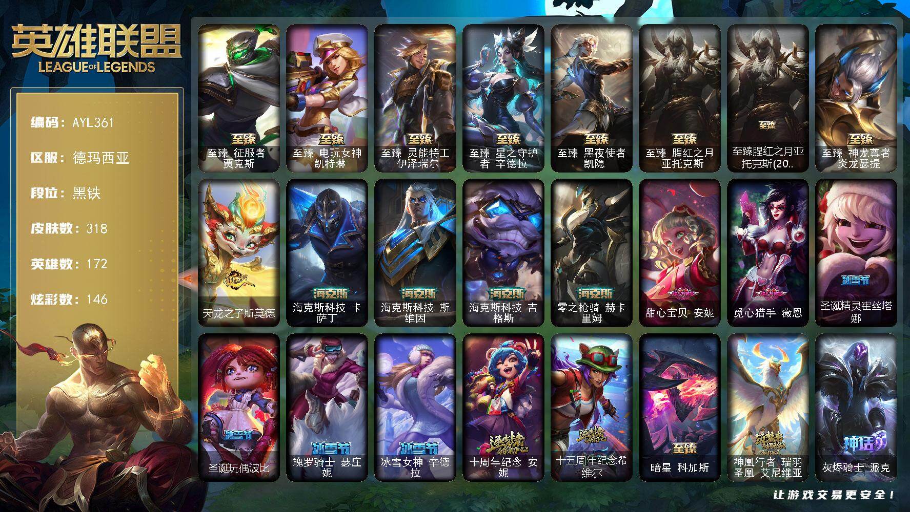 [15329506]【店主推荐捡漏号】黑铁段位-172英雄-318皮肤-146炫彩-0终极-17神话-37限定-43传说-72史诗