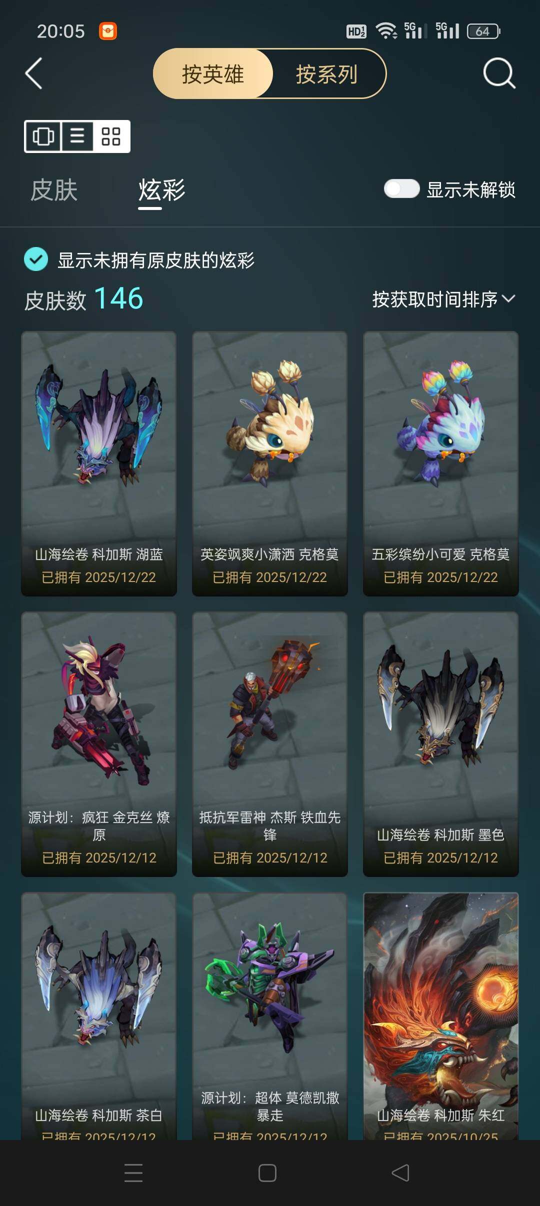 【臻彩皮肤】:无畏骑士瑟庄妮赤子初心,征服者韦鲁斯炫金,冠军之隐劫凯旋圣装,山海绘卷科加斯朱红,霸天巨兽雪崩墨菲特,星之守护者卡莎热情之光,魔女阿卡丽虚荣,魔女阿狸饕餮,净雪之月莫甘娜冬虹
