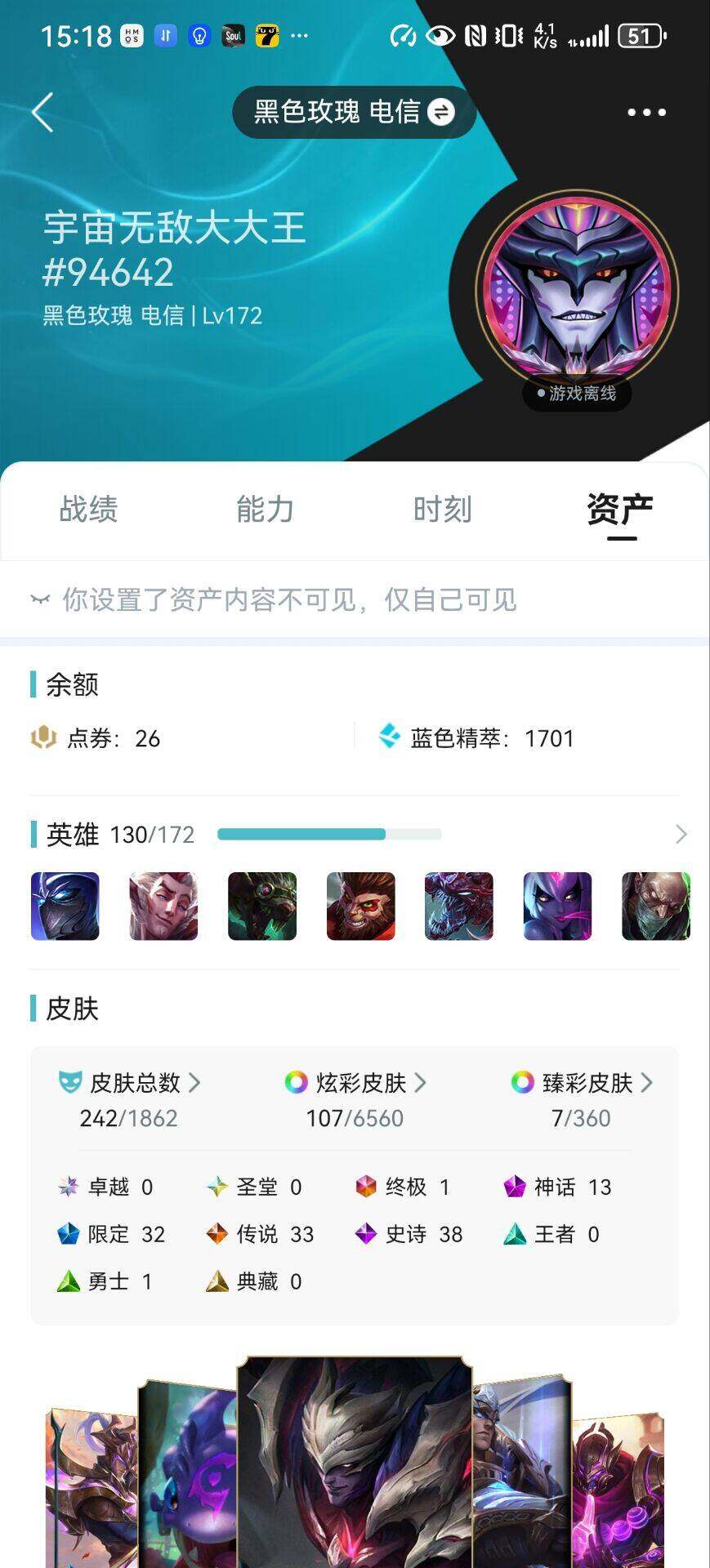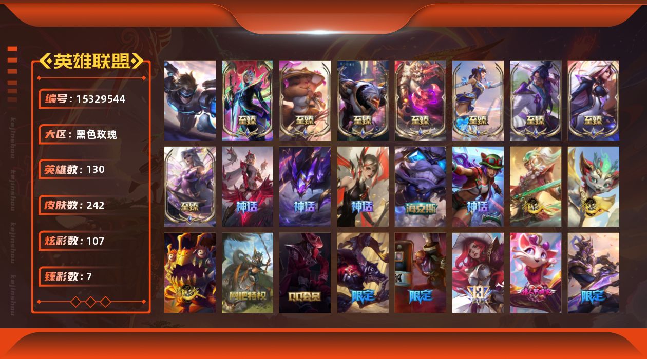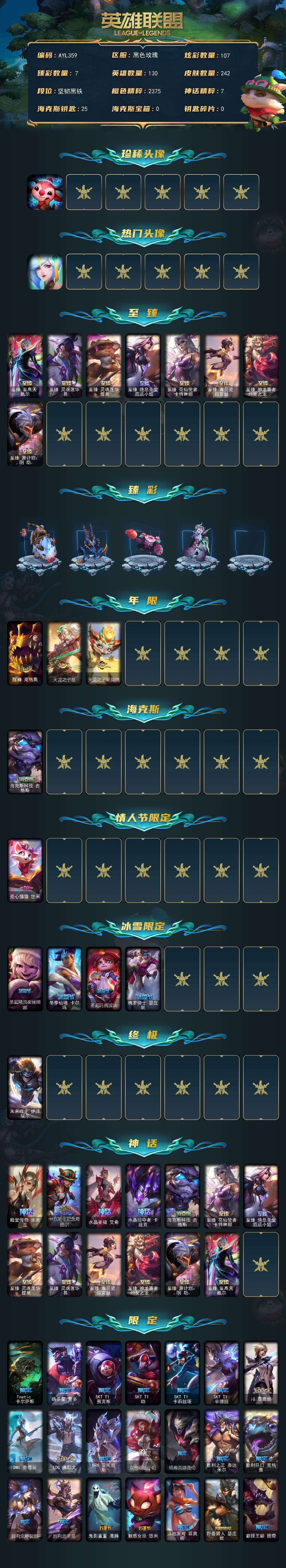 [15329544]可二次【特价出售/店主推荐】未定级段位-130英雄-242皮肤-107炫彩-1终极-13神话-32限定-33传说-38史诗