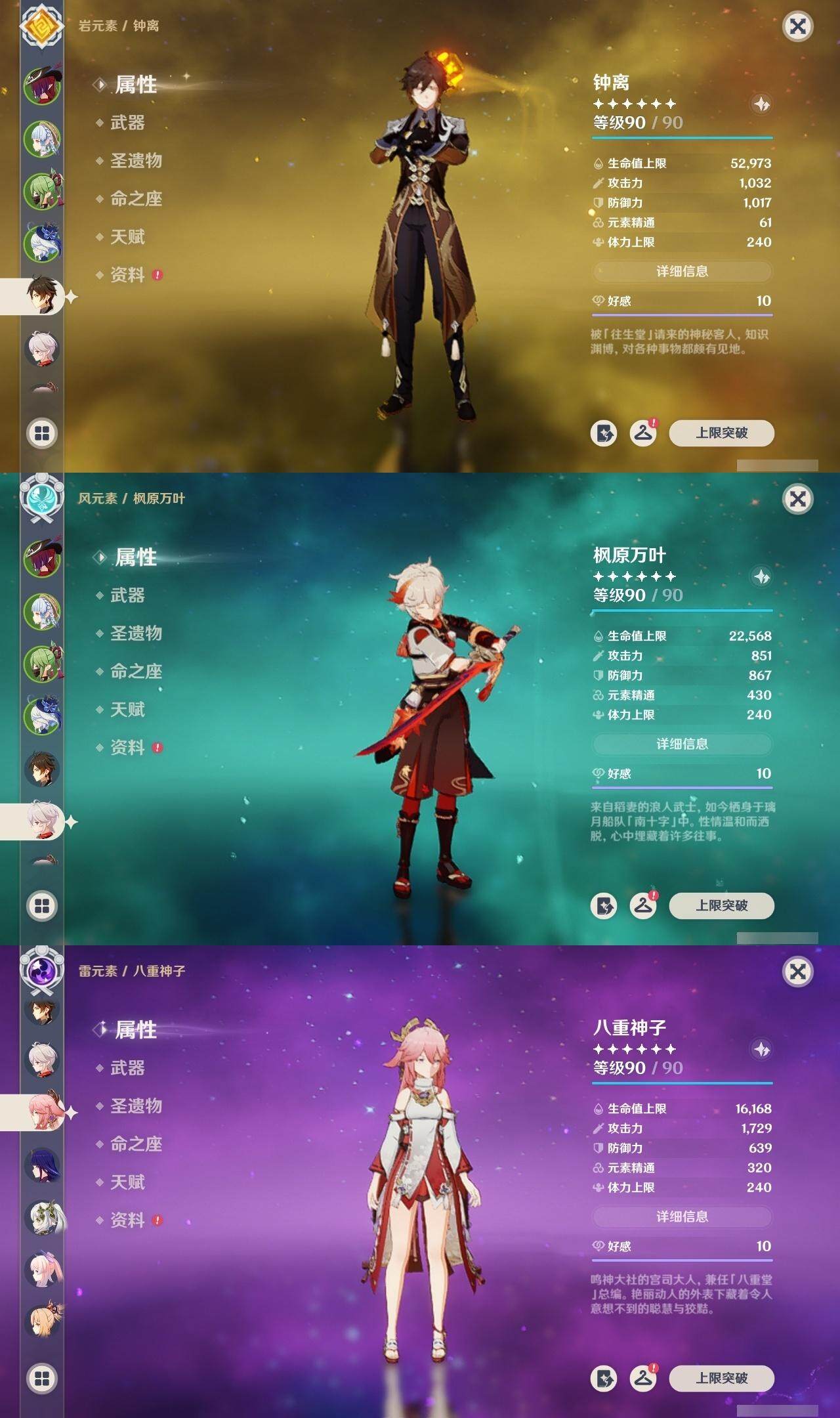 神里凌华,钟离,枫原万叶,八重神子,雷电将军,珊瑚宫心海,宵宫,迪卢克,申鹤,莫娜,达达利亚,琴,七七,刻晴