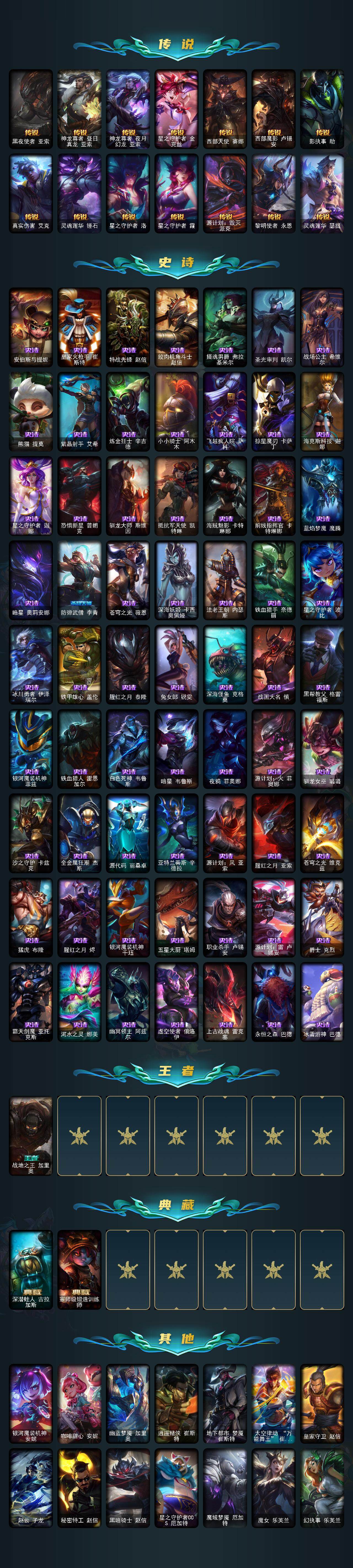 - [12030718]V9 1典藏 28传说 124英雄 322皮肤 可修改实名 优质装备:星域神启(倪克斯贼亮),云鹰飞将(小将军),猫影幻舞,炽阳神光,一念神魔,仲夏夜之梦(大飞蛾),超时空战士-狄仁杰,末日机甲-孙策,挚爱之约,无双飞将,山海·炽霜斩(李信年限),妄想实况,澜逐花归海,琥珀纪元铠,琥珀纪元马超,黄金天蝎座 传说皮:乘龙·问璇玑(孙尚香年限),乘龙·铭钟鼎(赵云年限),乘龙·淬吴钩(孙策年限),貂蝉曦玄引 珍宝阁皮:妄想食味,蔷薇恋人,玩趣恶龙 限定皮:愿照·九州拓(澜年限),逐霄战戟,鸣野蒿,傲雪梅枪,前尘镜,白鹤梁神女,时雨天司(水龙头),飞衡(韩信年限),山海·碧波行(瑶年限),高山流水,齐天大圣,怒海麟威,降魔,五谷丰年,游园惊梦,梁祝,御风骁将(吕布年限),龙胆,逐梦之音,李小龙,孙行者,引擎之心,寅虎·瑞焰(虎皮蛋子),寅虎·赤拳(老虎年限),时之奇旅-妲己,神器·万象笔,山海·玄木吟(马可年限) 史诗皮:器灵·浮梦炉,化蝶舞,谪仙醉月,龙之律动,百相守梦-周瑜,芈月浮光幕影,夜落电台,上官婉儿群星魔术团,蔬乡物语(鲁班七号),乘龙·聚宝船(安琪拉年限),乘龙·忆丹青(大乔年限),百相守梦-百里守约,星界特工,百相守梦-黄忠,织梦人,遇见神鹿,紫霞仙子,白龙吟,黄金分割率,特工魅影,千年之狐,江河有灵,匿光侦查者,雪夜绮愿(周瑜),真我赫兹(百里守约),魅语,百解令(蒙犽),高渐离燃音魔法,偶像歌手,电玩·爆裂旋风,龙骑士(小龙虾),末日机甲-吕布,猫狗日记-孙策,乱世虎臣,节奏热浪,修罗,女仆咖啡,水果甜心,绅士熊喵,星夜王子,心灵骇客,功夫厨神,暗隐猎兽者,鬼剑武藏,暗渊魔法,舞动绿茵,地狱岩魂,纤云弄巧,拒霜思,缤纷独角兽,乘风破浪,逐浪之夏,月团寄思,水晶猎龙者,曙光守护者,热力回旋,箭羽风息,唤灵魅影,金属风暴,圣诞狂欢,圣诞恋歌,鹰眼统帅,魅力维加斯,天秀·音浪,无心,未来纪元-赵云