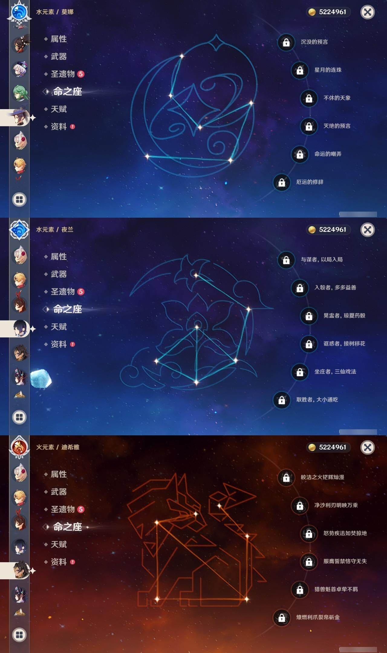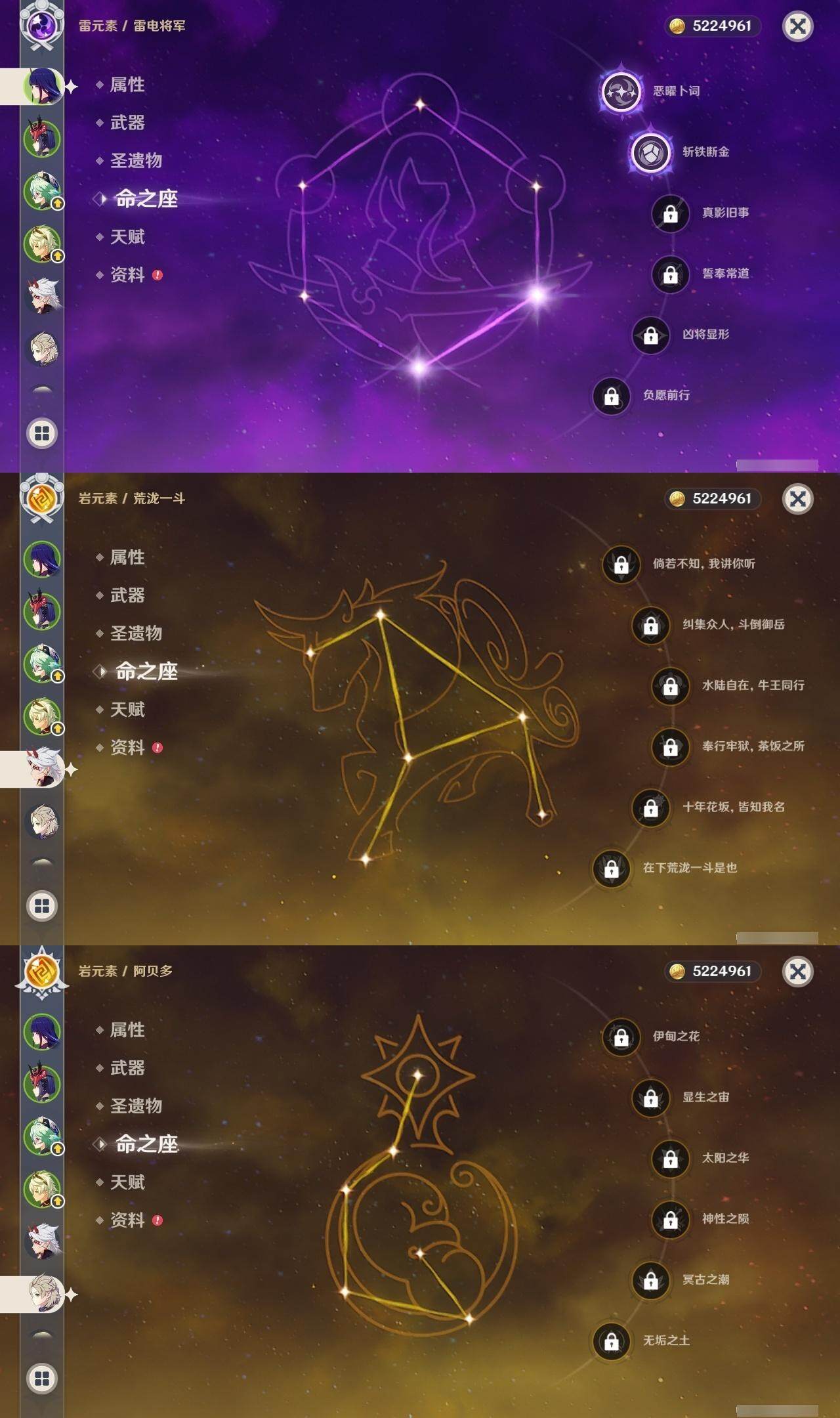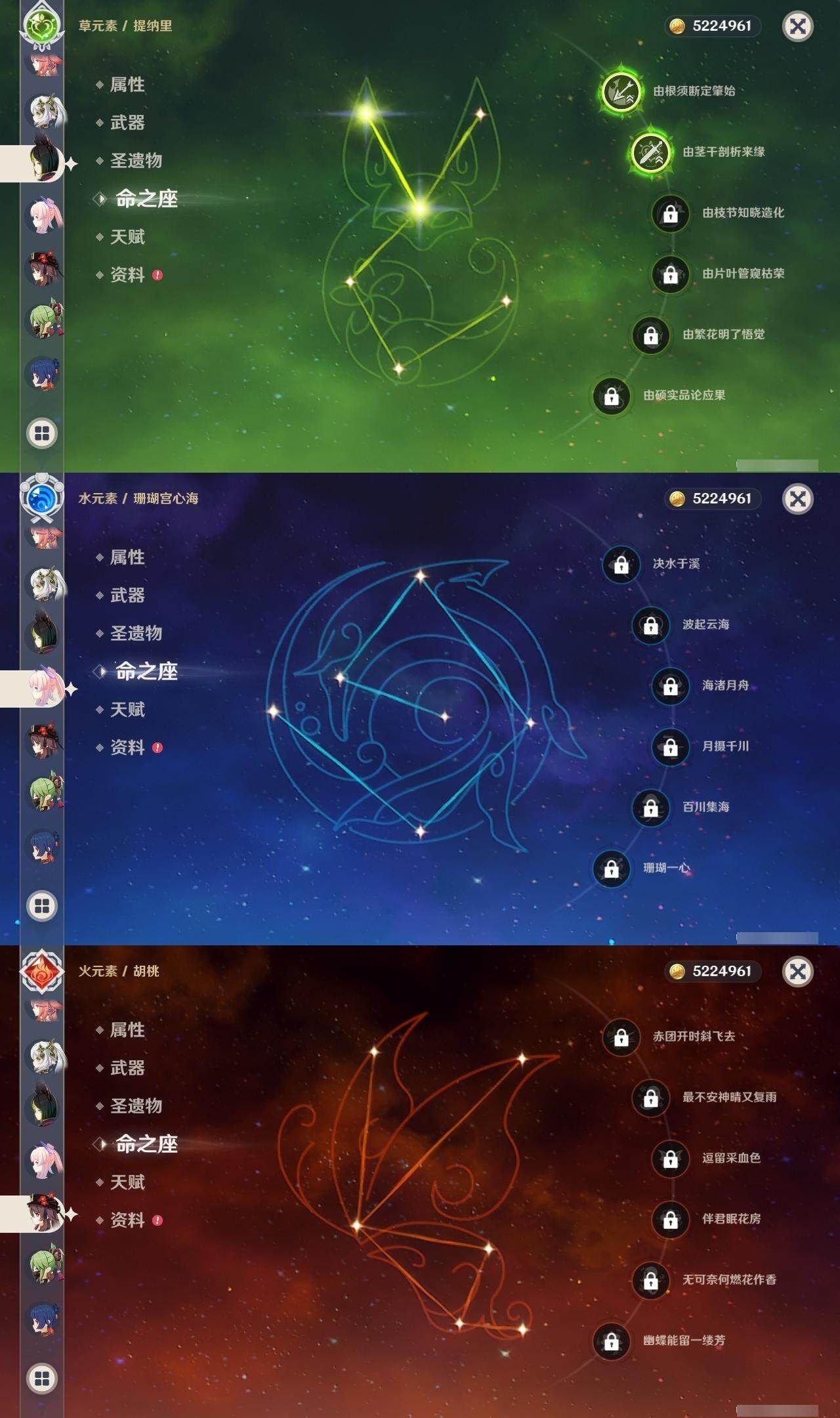 0命白术,0命迪希雅,0命纳西妲,2命提纳里,0命夜兰,0命八重神子,0命荒泷一斗,2命雷电将军,0命神里绫华,0命胡桃,0命阿贝多,0命珊瑚宫心海,4命七七,1命琴,0命莫娜,精1有乐御簾切,精1裁叶萃光,精1薙草之稻光,精1四风原典,精1和璞鸢,精1天空之翼,精1天空之卷,精1天空之傲