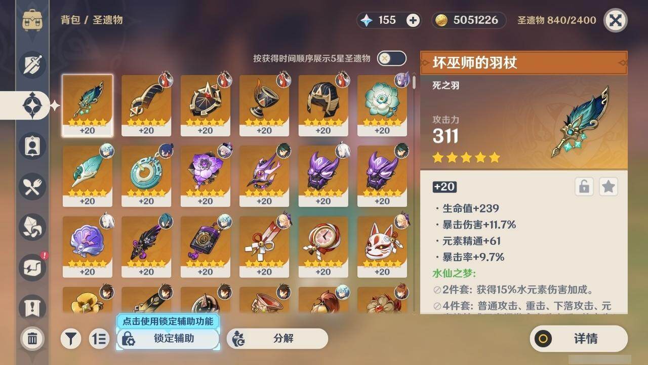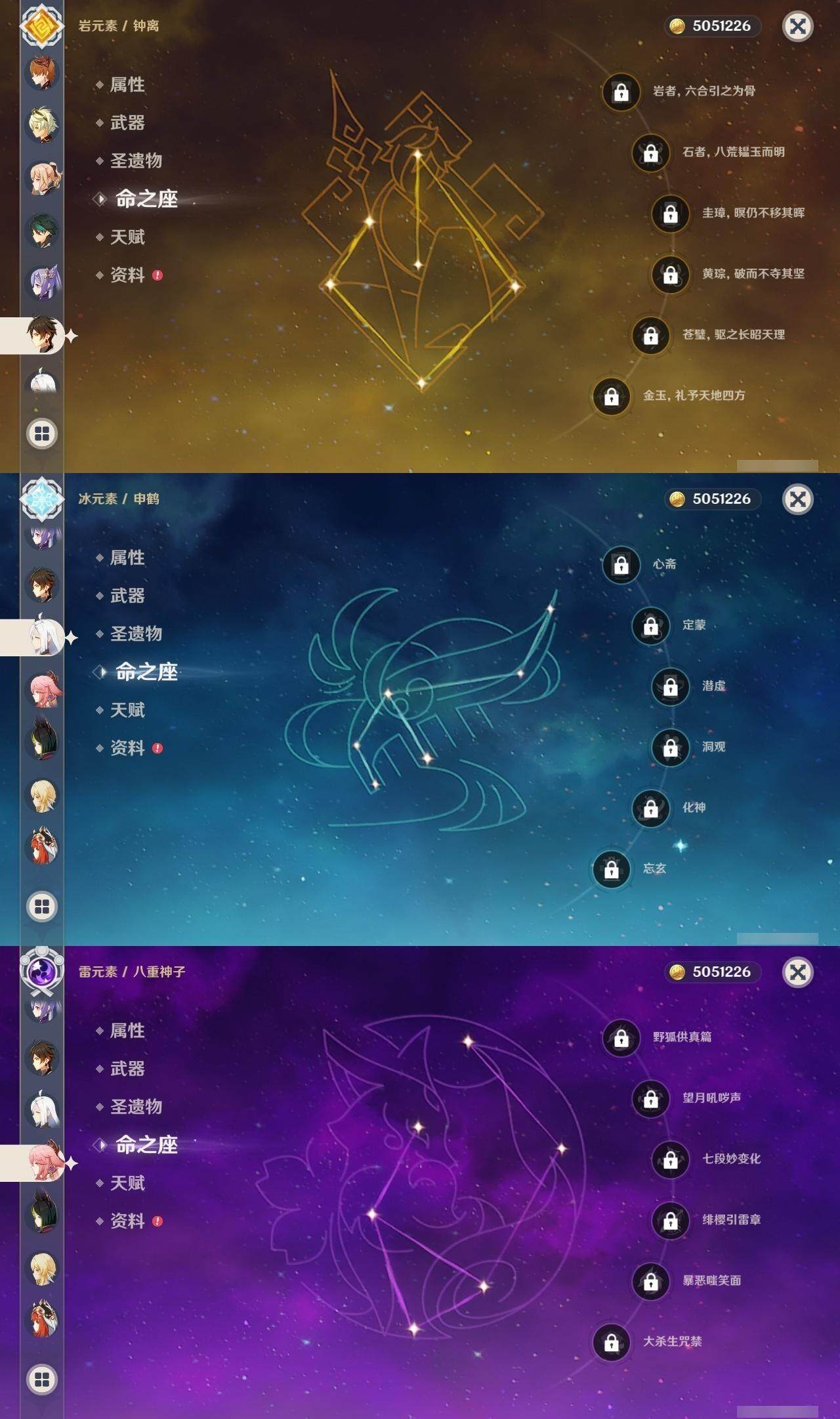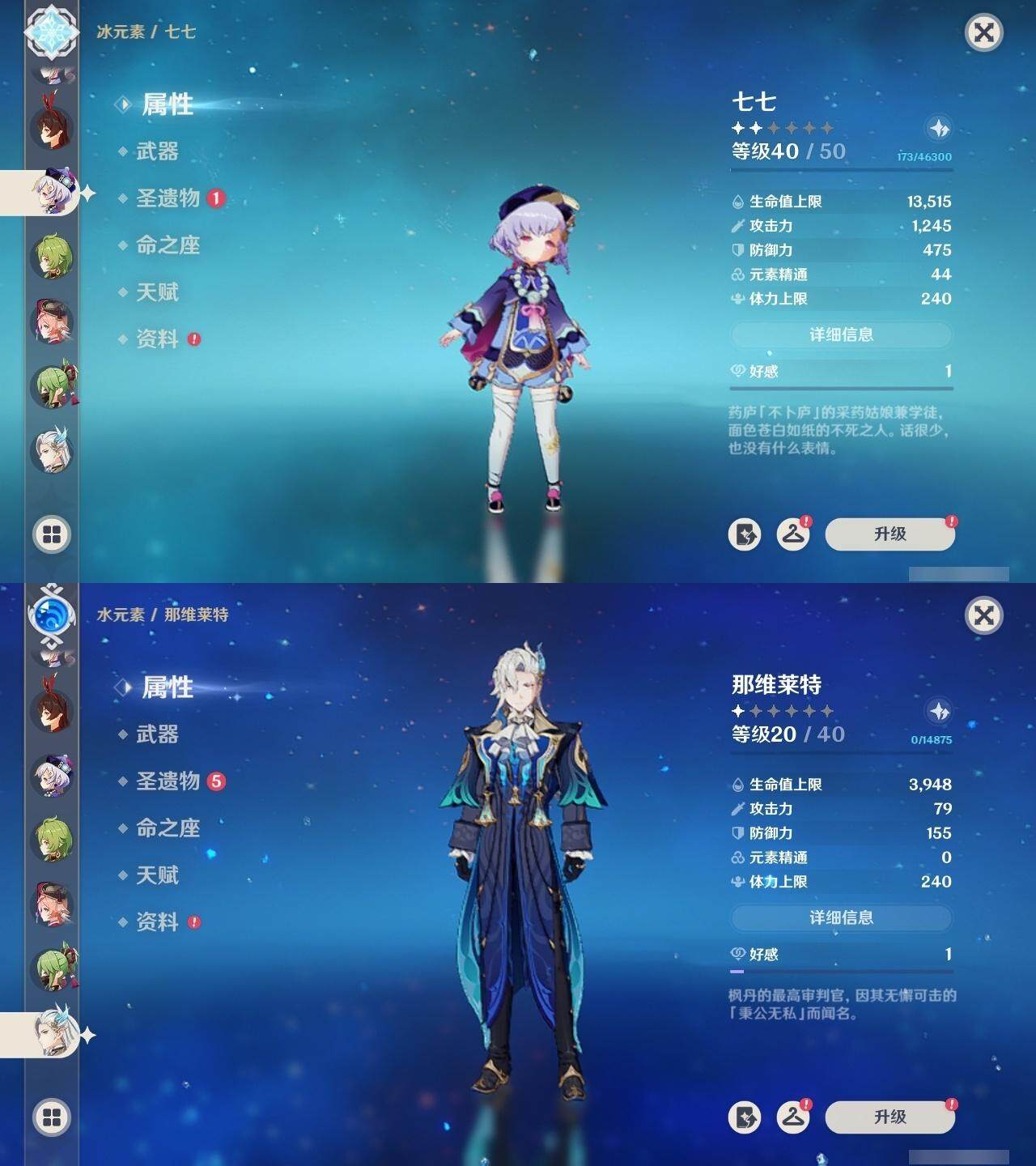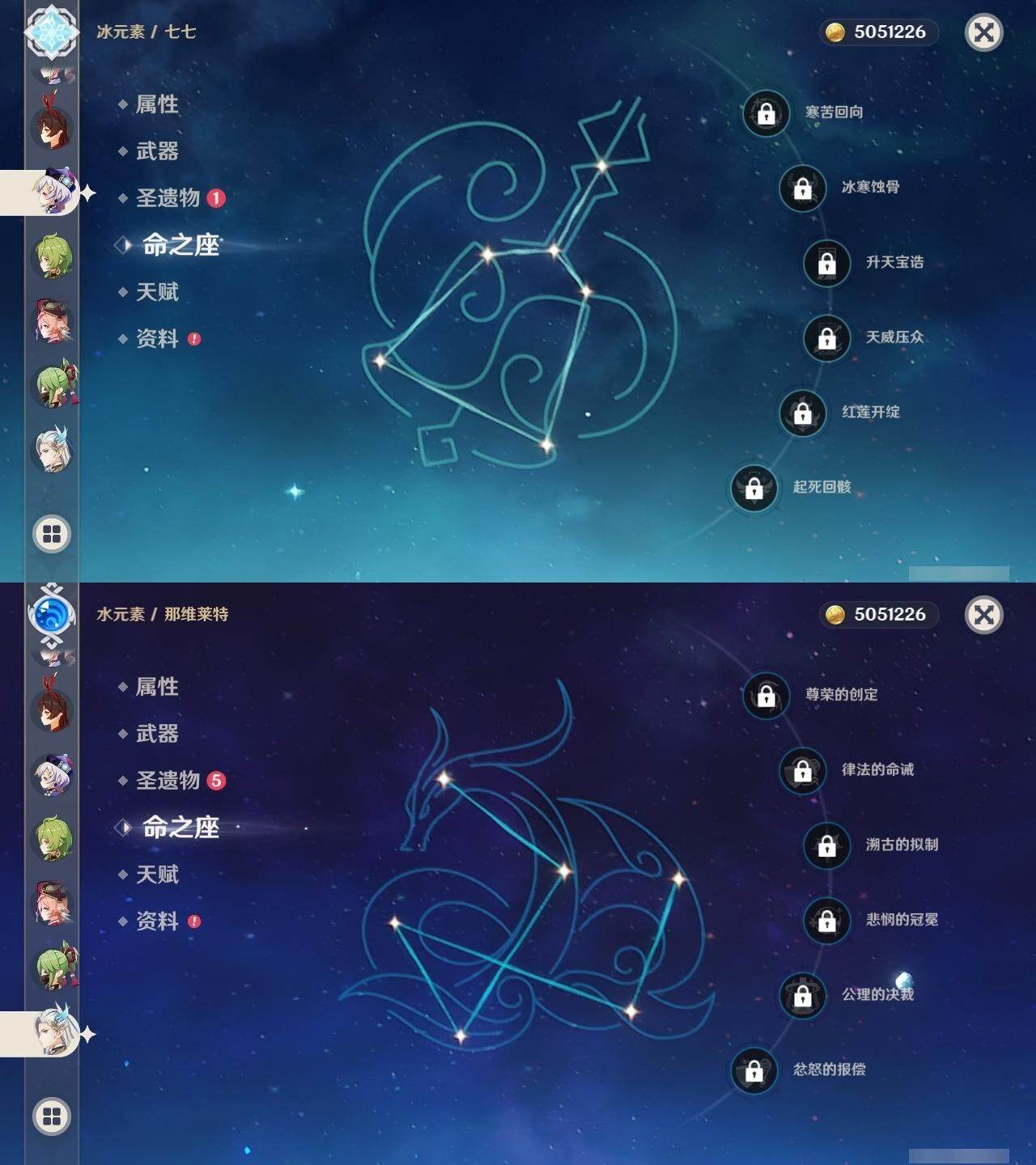 0命那维莱特,0命妮露,0命提纳里,0命八重神子,0命申鹤,0命神里绫华,0命钟离,0命魈,0命温迪,0命达达利亚,0命刻晴,0命七七,1命琴,1命莫娜,精1磐岩结绿,精1和璞鸢,精1天空之脊,精1天空之刃,精1风鹰剑