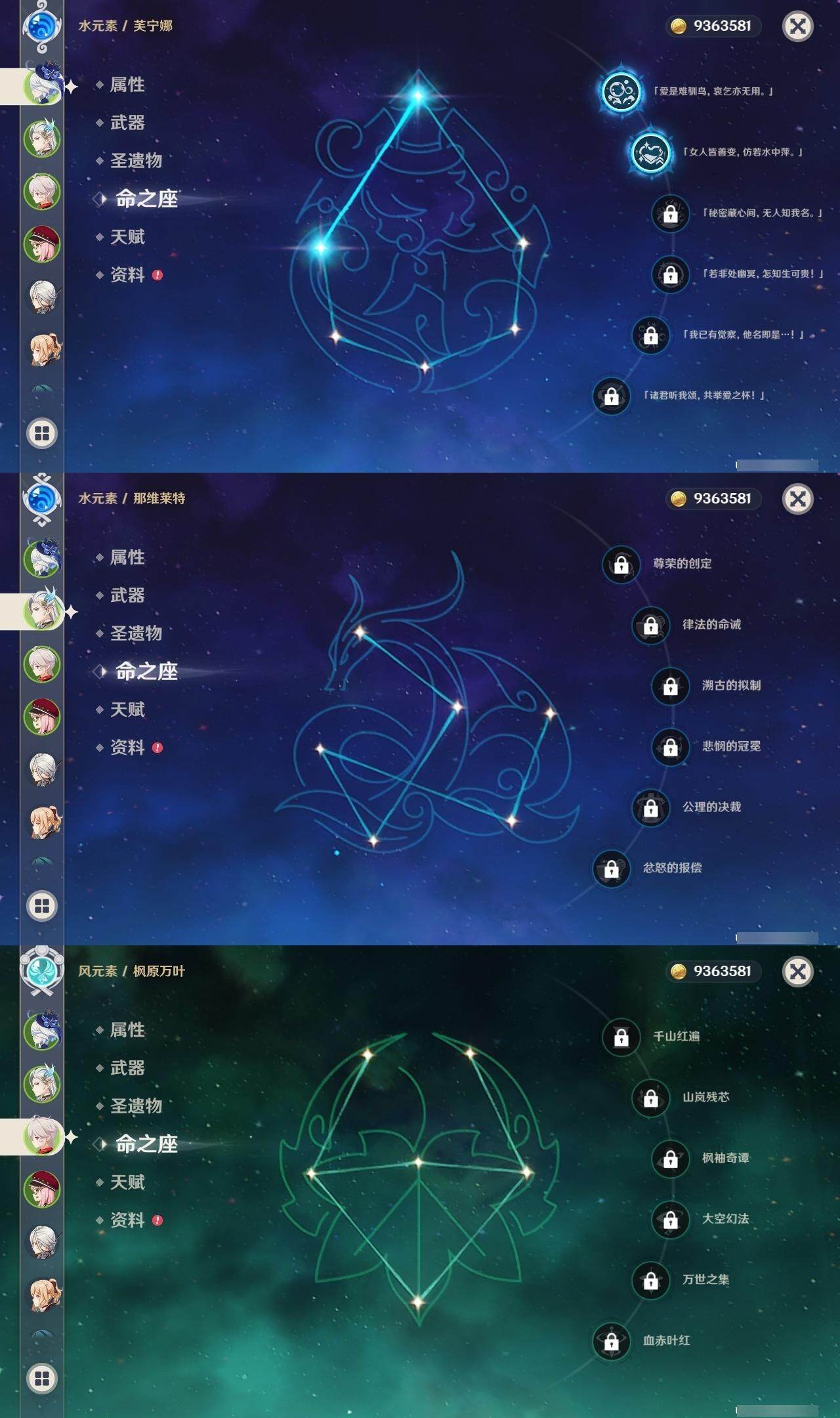 0命阿蕾奇诺,2命芙宁娜,0命那维莱特,1命迪希雅,0命雷电将军,0命枫原万叶,1命刻晴,0命七七,2命琴,0命迪卢克,0命瓦雷莎,精1天空之刃,精1冲浪时光