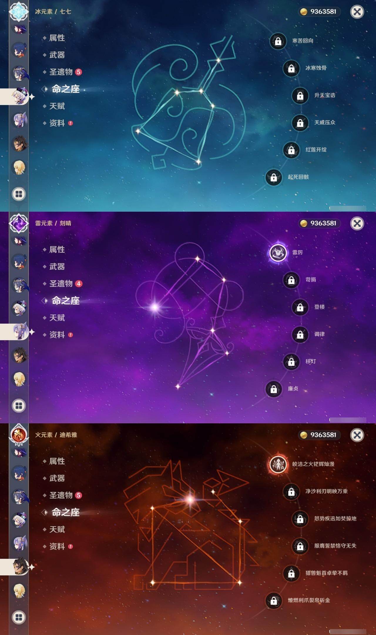 - [15199837]59级/34黄/女主/16个五星角色/5个五星武器 0命那维莱特,0命纳西妲,3命提纳里,0命夜兰,2命雷电将军,0命枫原万叶,0命神里绫华,0命钟离,0命可莉,0命达达利亚,0命珊瑚宫心海,4命刻晴,1命七七,0命琴,1命莫娜,1命迪卢克,精1无工之剑,精2四风原典,精1天空之刃,精1天空之卷,精1山王长牙