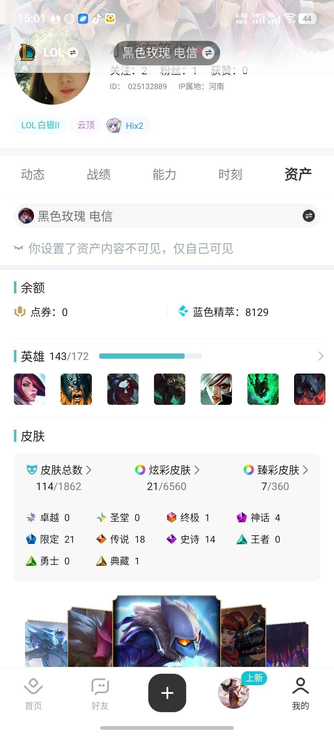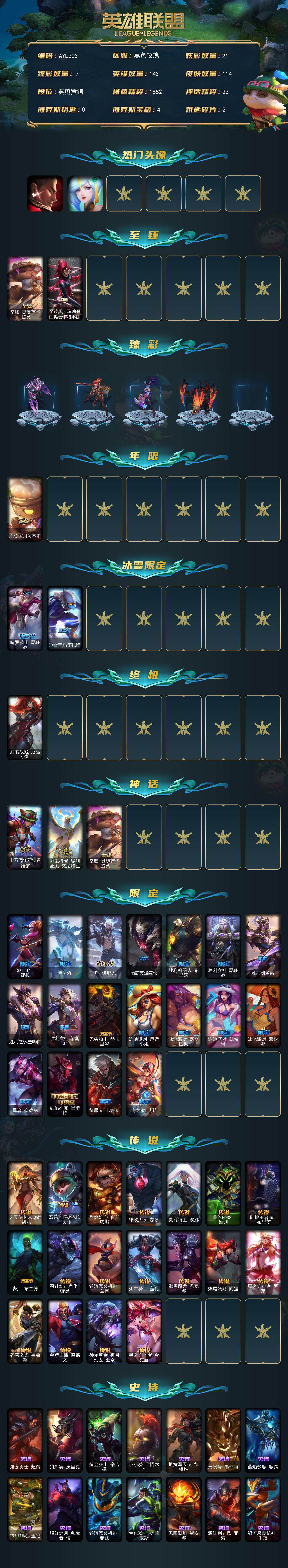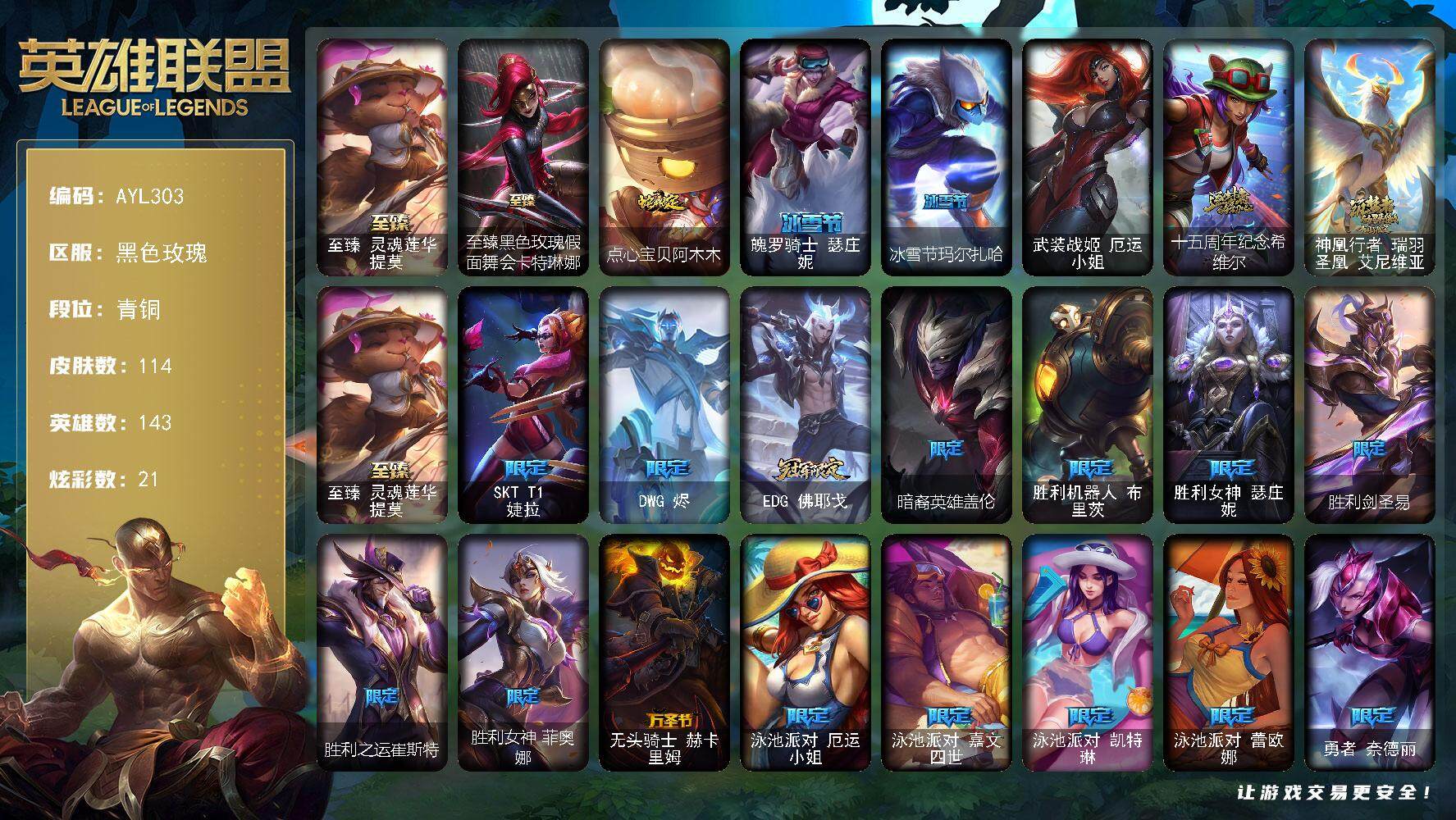 [15344299]【店主推荐捡漏号!可直接换绑】青铜段位-143英雄-114皮肤-21炫彩-1终极-4神话-21限定-18传说-14史诗