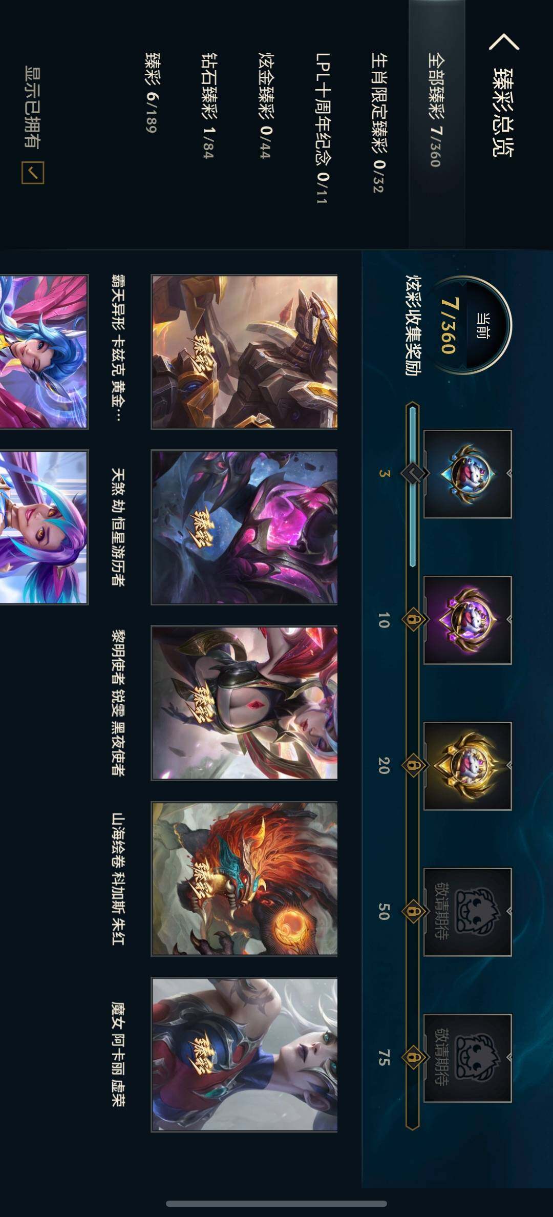 【臻彩皮肤】:幻灵白鸽萨勒芬妮梦幻强袭,天煞劫恒星游历者,黎明使者锐雯黑夜使者,星之守护者金克丝黑洞,山海绘卷科加斯朱红,魔女阿卡丽虚荣,霸天异形卡兹克黄金异端