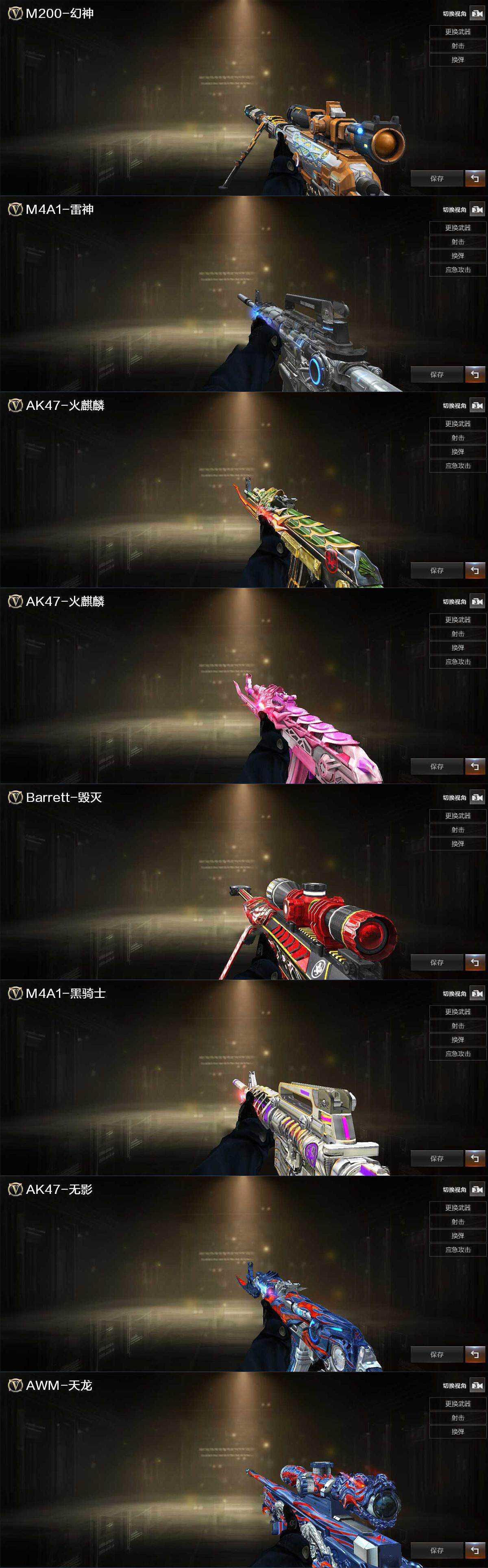 【皮肤】:M200-幻神-黄忠皮肤,雷神-星空,火麒麟-战神关羽,火麒麟-心动糖果,毁灭-战神张飞,黑骑士-战神马超,无影-能量核心,天龙-能量核心