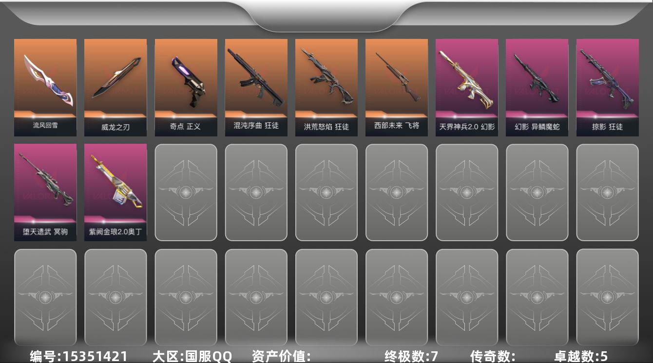 [15351421]【英雄】:幻棱,炼狱,维斯,暮蝶,钛狐,壹决,铁臂,捷风,雷兹,幽影,不死鸟,贤者,猎枭,蝰蛇,零,芮娜,奇乐,尚勃勒,霓虹,斯凯,夜露,星礈,K/O,海神,盖可,黑梦,钢锁 【近战武器】:近战武器-流风回雪,近战武器-威龙之刃 【狂徒】:狂徒-洪荒怒焰,狂徒-混沌序曲,狂徒-掠影 【幻影】:幻影-天界神兵//2.0,幻影-异鳞魔蛇 【冥驹】:冥驹-堕天遗武 【飞将】:飞将-西部未来 【奥丁】:奥丁-紫阙金琅//2.0 【标配】:标配-超能偶像 【正义】:正义-奇点,正义-超限闪存,正义-复古浪潮,正义-纳米打击,正义-游戏结束 【鬼魅】:鬼魅-流星兵团,鬼魅-光导纤维,鬼魅-星云暗涌 【狂怒】:狂怒-喷火式 【短炮】:短炮-梦魇恶魔 【卡面】:终章:激斗汉堡 卡面,进入射程 卡面,《双城之战》拥抱 卡面,精灵大战 卡面,欢迎来到底城 卡面,南瓜盛典 卡面,修车达人 卡面,正义的化身 卡面,终章:生意人麦宝 卡面,铁之华 卡面,时间到 卡面,最高舞台 卡面,声感陷阱设计图 卡面,Clutch 卡面,梦幻奶茶 卡面,终章:打造专属狂徒 卡面,趁热吃 卡面,源能反应 卡面,零点嗅探设计图 卡面,终章:瓦娃脸雪糕 卡面,表象之下 卡面,沙雕爆能器 卡面,无畏契约GO!第一卷:芮娜 卡面,清除名单 卡面,无畏契约GO!第一卷:零 卡面,终章:同步耍酷 卡面,龍记 卡面,化茧成蝶 卡面,《双城之战》金克丝 卡面,势不可挡//盖可 卡面,完美调谐 卡面 ,没有什么能逃过我的眼睛 卡面,暗枪 卡面,别冒尖 卡面,黑影先生的咖啡! 卡面,代号红色 卡面,冰淇淋店 卡面,新兵报到 卡面,友军火力 卡面,V契约 卡面,无畏契约 卡面,暗潮 卡面 【喷漆】:嗨宝南瓜灯 喷漆,嘭! 喷漆,都算到了 喷漆,控场勿近 喷漆,小丑猫 喷漆,熊抱 喷漆,超级粉丝 喷漆,捷风差距 喷漆,惊声尖叫 喷漆,拼一枪 喷漆,采蜜小蜂队 喷漆,我觉得不行 喷漆,我的刀呢? 喷漆,UWU 喷漆,新潮流 喷漆,双击点赞 喷漆,买装还是存钱 喷漆,醒狮贺春 喷漆,无畏契约GO!第一卷:芮娜 喷漆,红鳞 喷漆,无畏契约GO!第一卷:零 喷漆,无畏契约GO!第一卷:捷风 喷漆,无畏契约GO!第一卷:贤者 喷漆,暴走萝莉 喷漆,松叶 喷漆,无畏契约GO!第一卷:奇乐 喷漆,旅行小熊 喷漆,蕊形灯 喷漆,胜利属于无畏契约