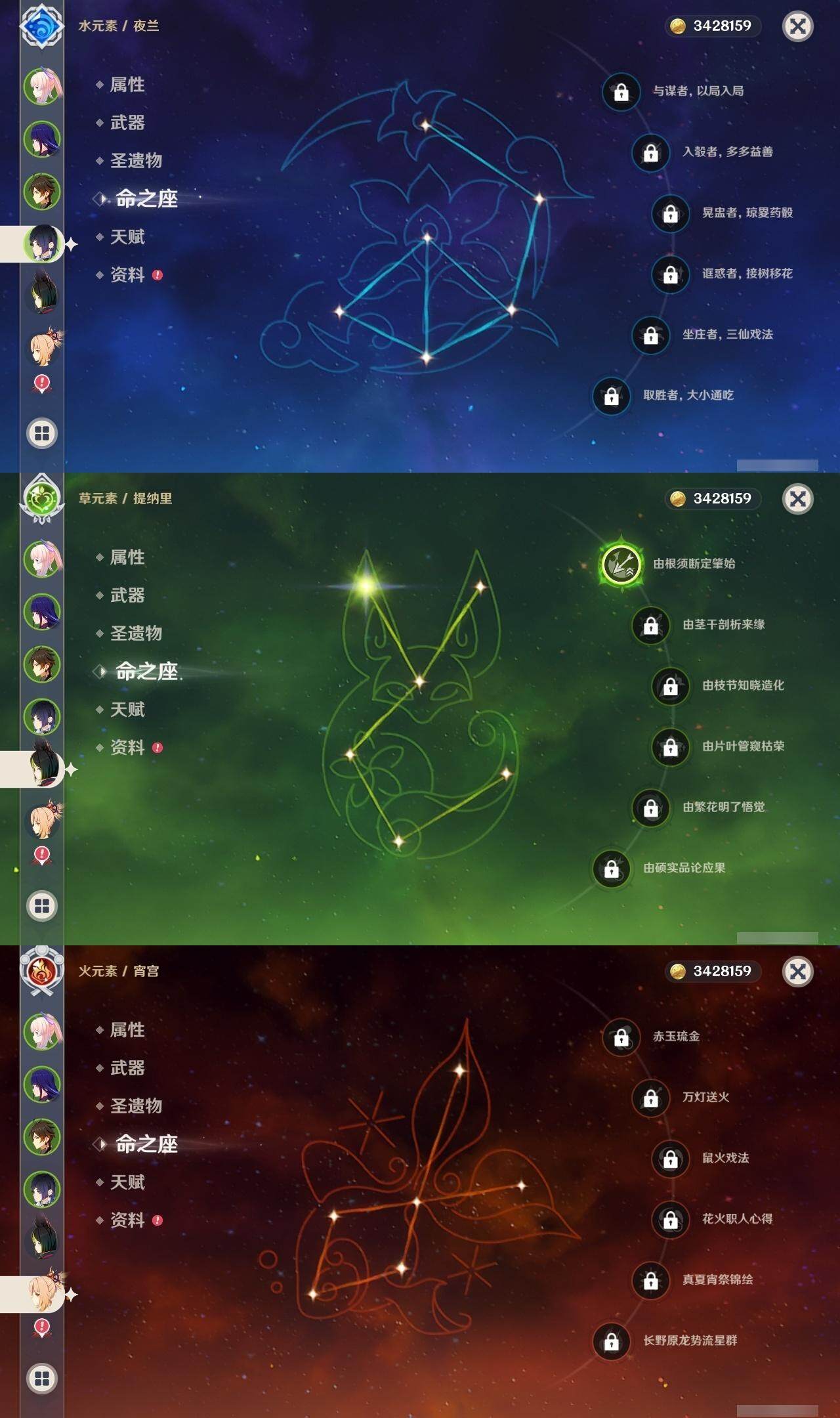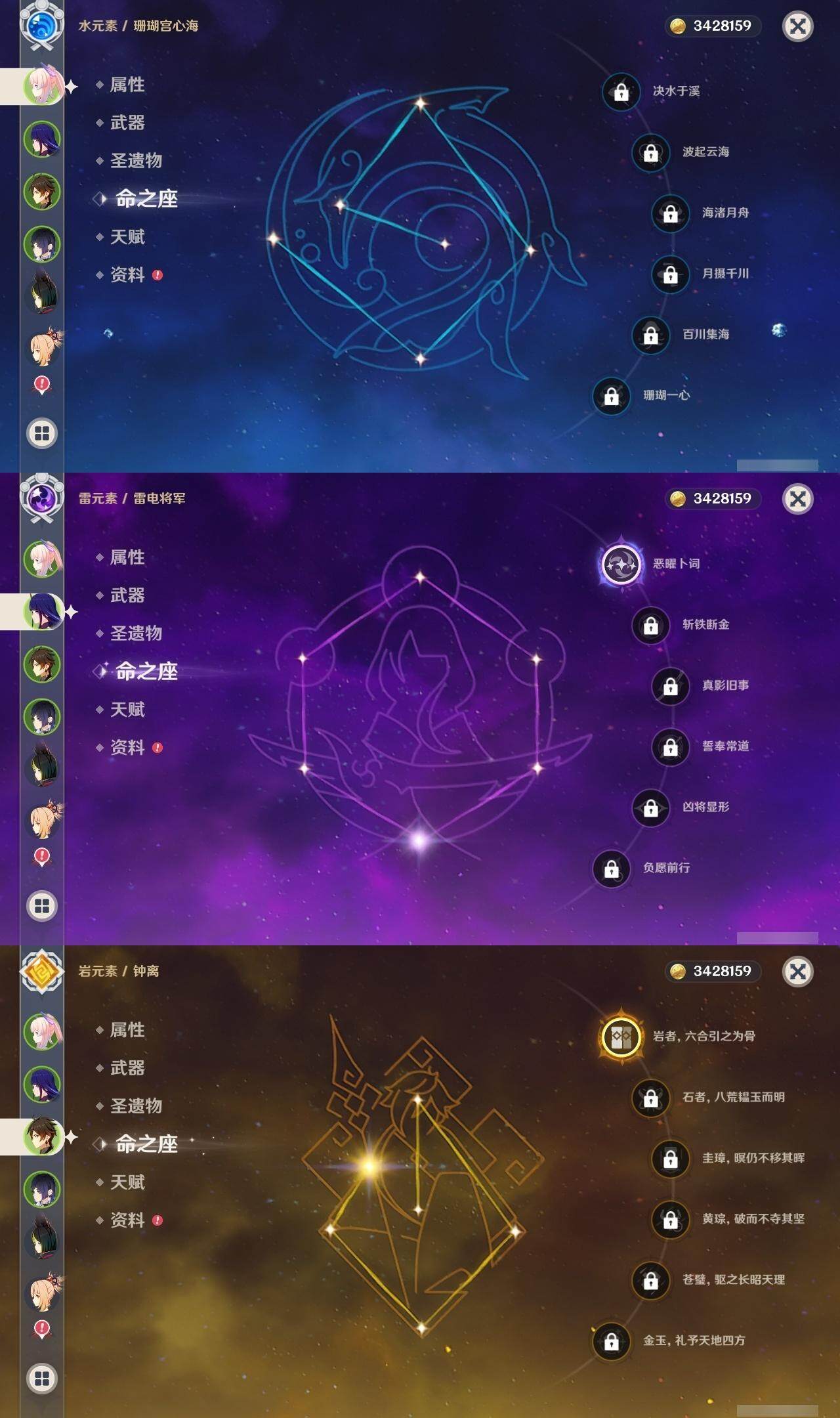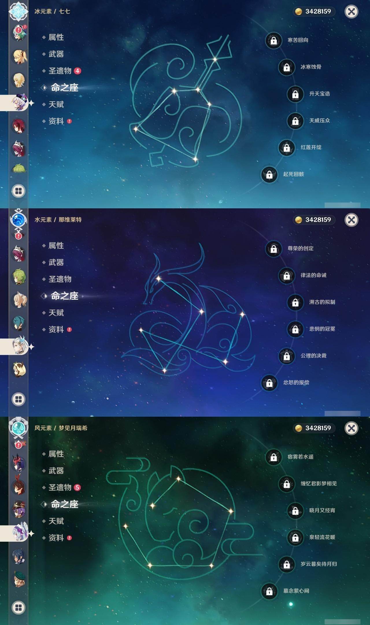 0命那维莱特,1命提纳里,0命夜兰,1命雷电将军,1命钟离,0命宵宫,0命珊瑚宫心海,0命七七,0命琴,0命迪卢克,0命玛薇卡,0命梦见月瑞希,精1若水,精1薙草之稻光,精1飞雷之弦振,精2天空之卷,精1天空之傲