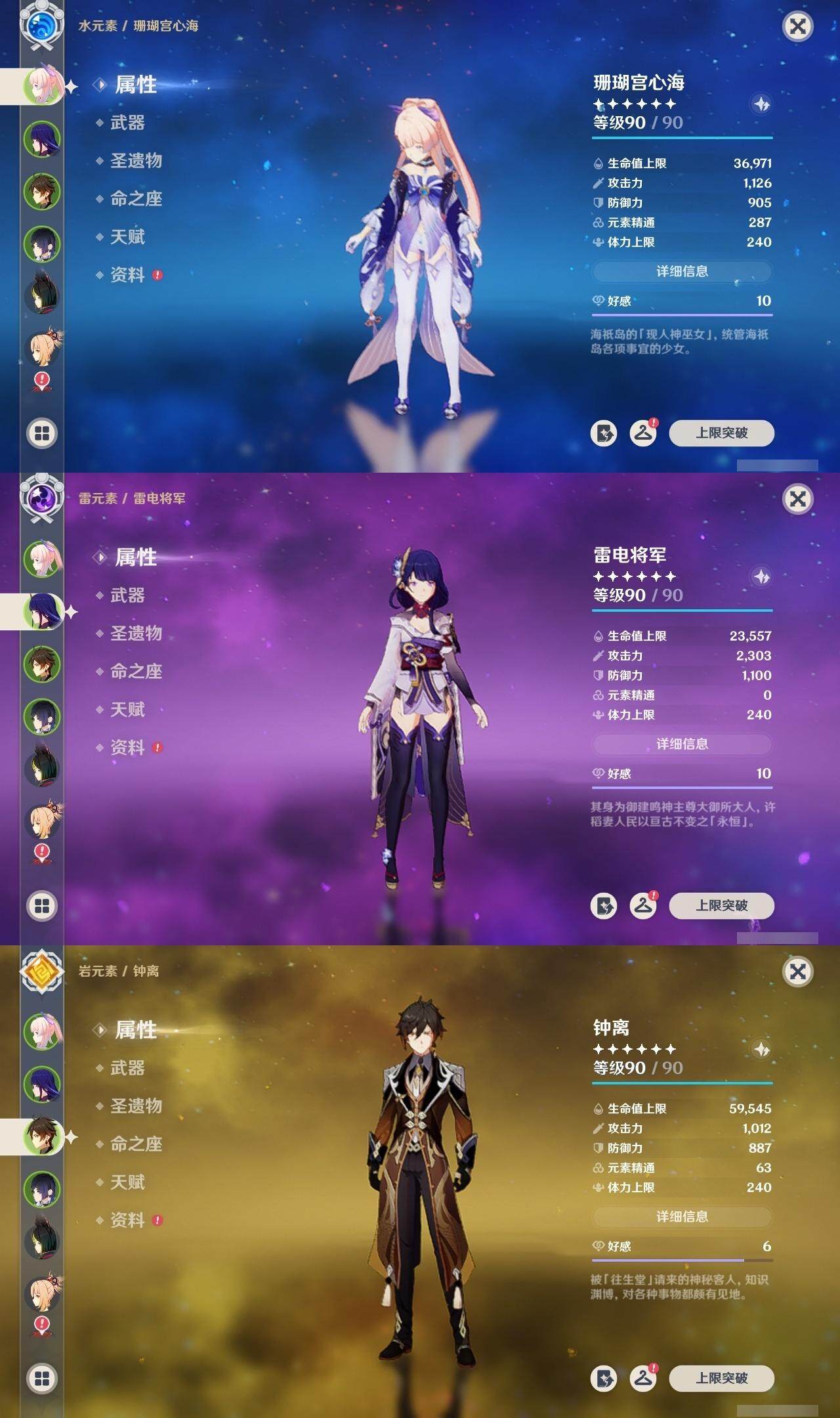 珊瑚宫心海,雷电将军,钟离,宵宫,迪卢克,琴,七七