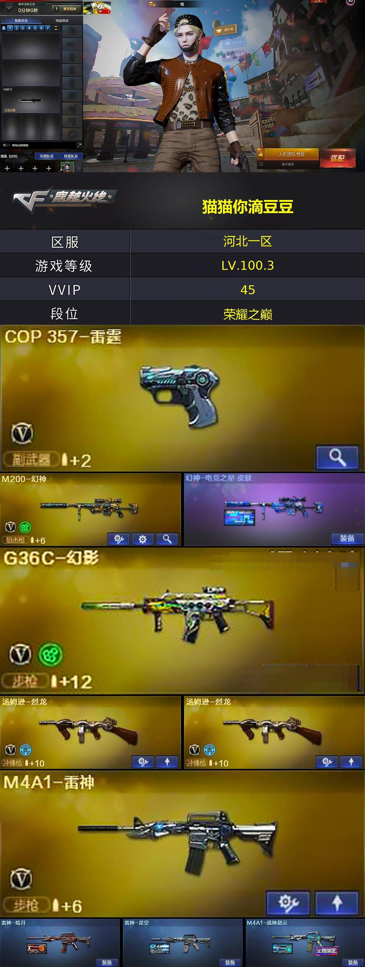 【热门武器】:G36C-幻影,M200-幻神,死亡之眼*2,M4A1-黑骑士,汤姆逊-烈龙*2,加特林-炼狱,沙鹰-修罗