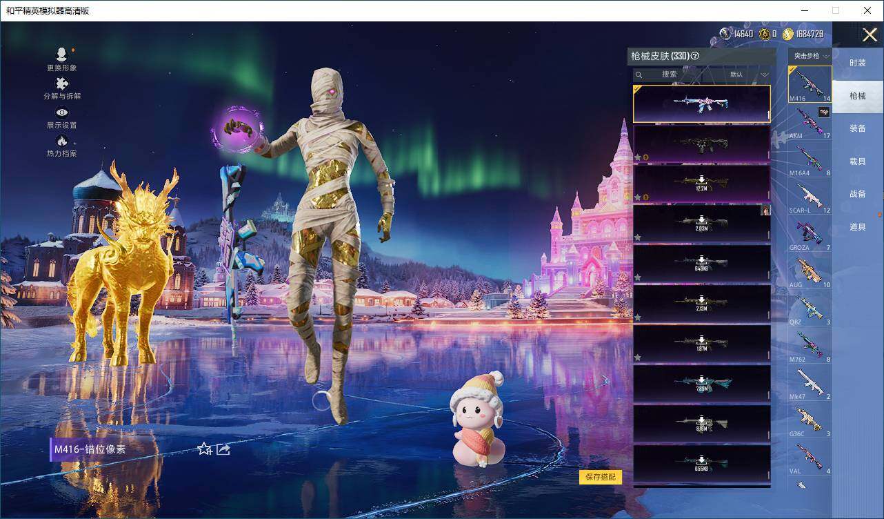 AKM-缤纷海域,M416-仓鼠灰灰,M416-魔法学院,M416-黄金龙骨,AWM-黄金龙骨