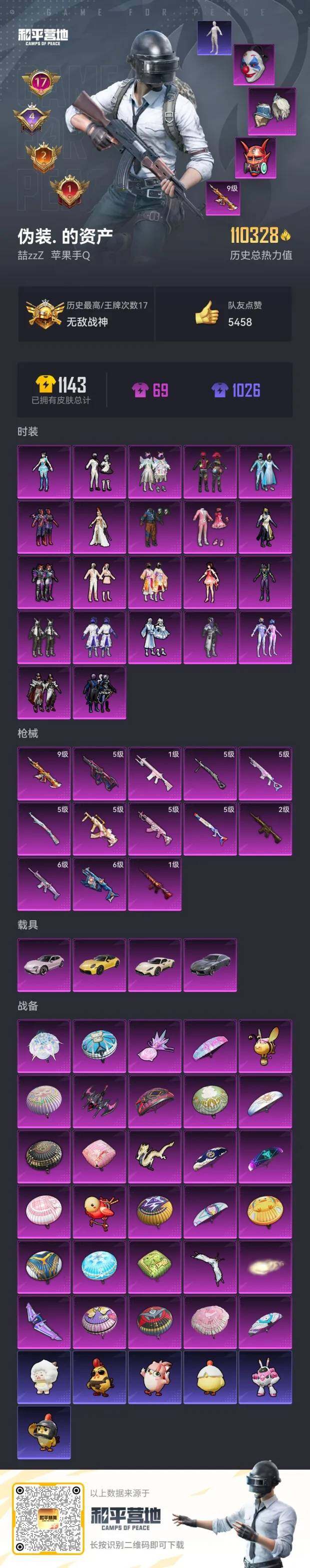 [14542614]【1633】苹果 手Q-无敌战神框-22粉装-13特效枪-4载具-8粉色飞行器-110328热力值-17王牌印记-236套装-291枪皮