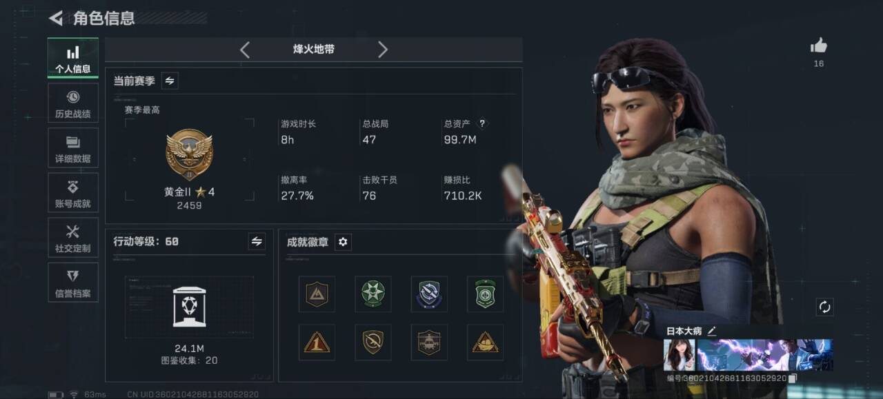 [15371013]【特价出售/店主推荐】99m总资产-10843k哈伏币-60烽火等级-黄金-26战场等级-上等兵