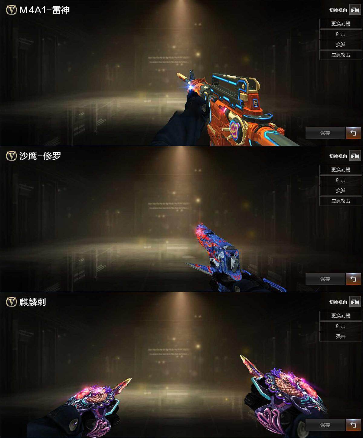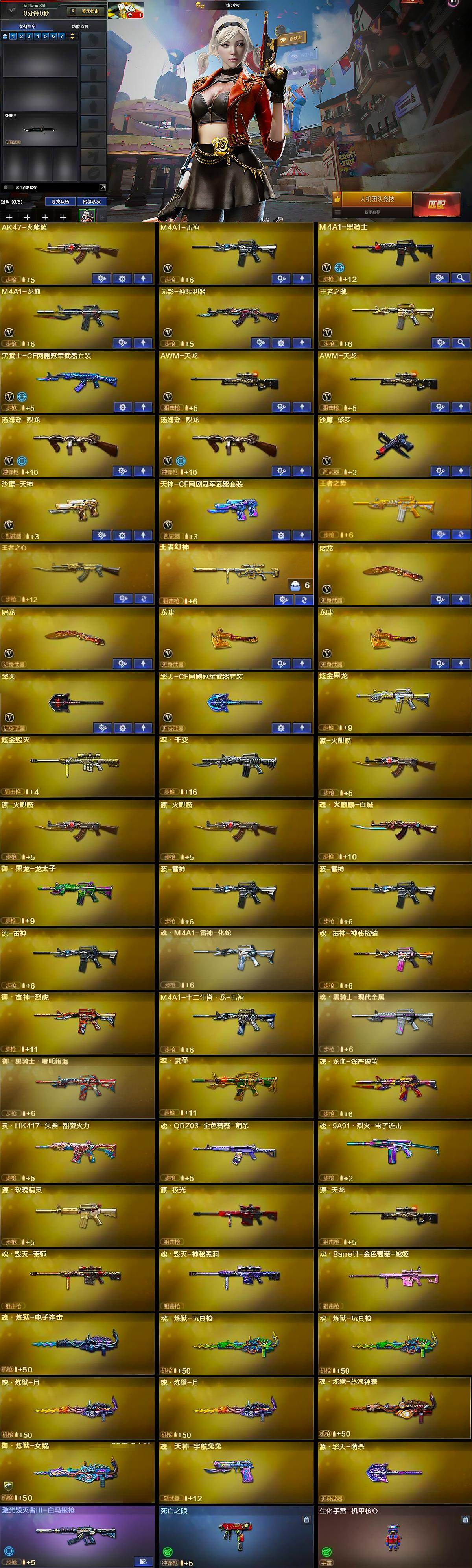 【英雄级武器】:AK47-火麒麟,M4A1-雷神,M4A1-黑骑士,M4A1-龙血,无影-神兵利器,王者之魄-觉醒版,黑武士-CF网剧冠军,AWM-天龙*2,汤姆逊-烈龙*2,沙鹰-修罗,沙鹰-天神,天神-CF网剧冠军,屠龙*2,龙啸*2,擎天,擎天-CF网剧冠军