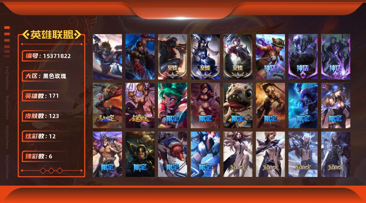 [15371822]【店主推荐捡漏号】白银段位-171英雄-123皮肤-12炫彩-2终极-6神话-25限定-19传说-19史诗