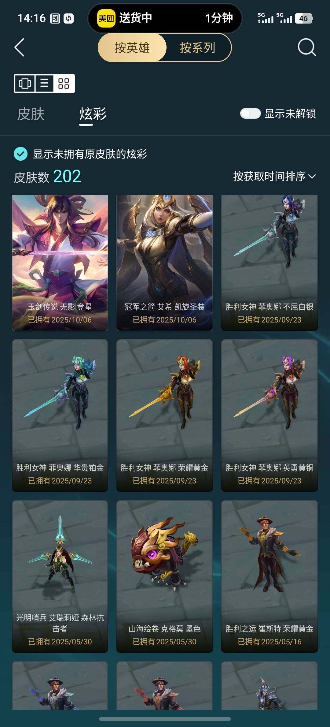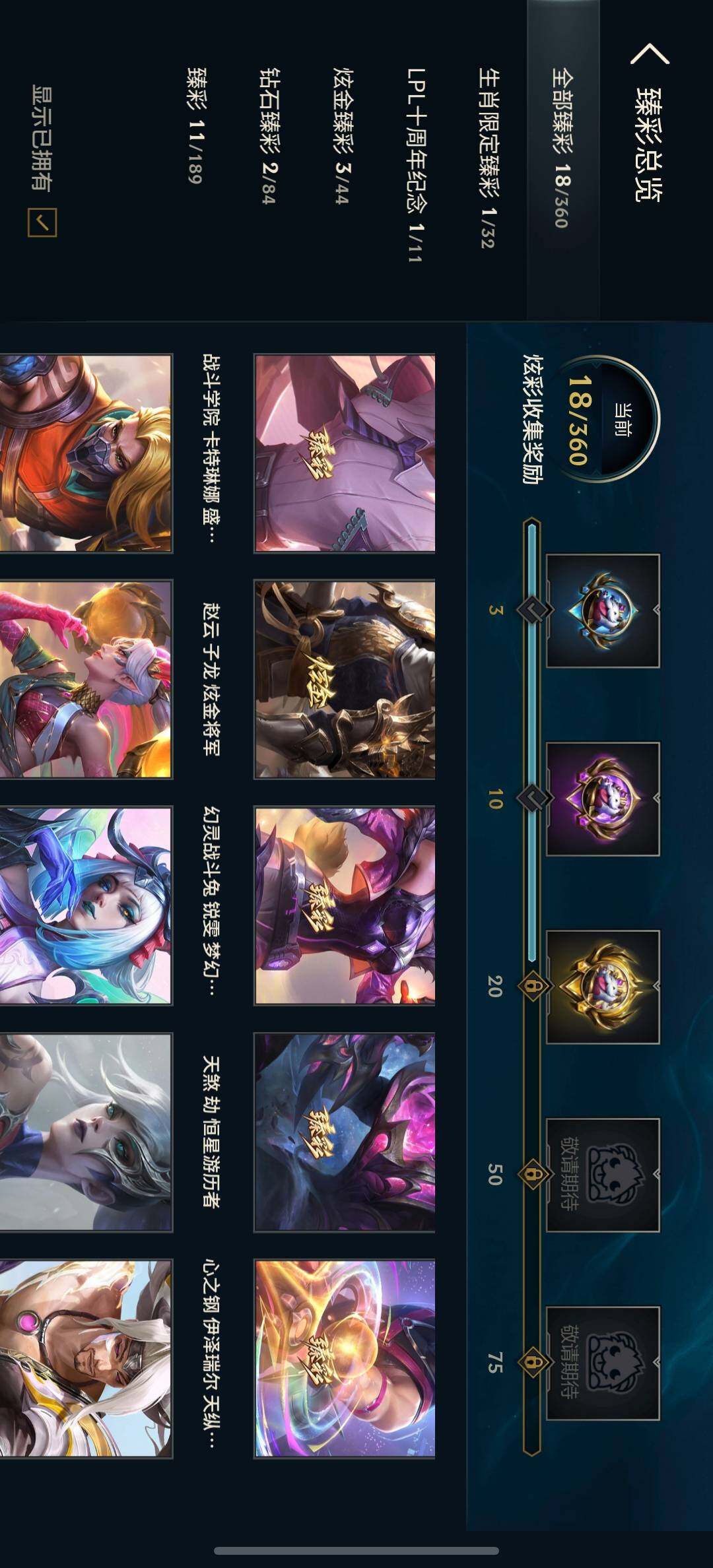【臻彩皮肤】:天龙之子卡莎飞龙乘云,无畏骑士瑟庄妮赤子初心,冠军之箭艾希凯旋圣装,冰霜之刃艾瑞莉娅炫金,墨之影武者亚索金墨耀影,霸天异形卡兹克掠空魅影,玉剑传说无影竞星,咖啡甜心璐璐焦糖布丁,星之守护者金克丝黑洞,可爱可爱粉红红布里茨,殿堂传奇乐芙兰登神,魔女阿卡丽虚荣,净雪之月莫甘娜冬虹,心之钢伊泽瑞尔天纵才华