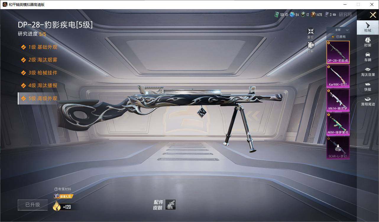 AKM-绿萝繁花,SCAR-L-梦幻火箭,Kar98K-巳巳如意,Mk14-精灵梦叶罗丽
