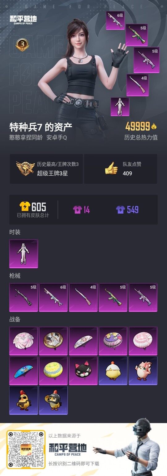 - PX_2100650-??/枪械8/装备342/战备213/王牌印记18/热力值85786/五级AKM-梦之光华/五级SCAR-L-梦幻火箭/一级M416-风花雪月/七级M416-暖熊萌萌/一级GROZA-焦糖拿铁/六级GROZA-巴啦啦小魔仙/六级M762-甜蜜誓约/五级Kar98K-巳巳如意/天使彩虹糖/梦幻火箭/飓风飞鹰/赤焰黑爵/紫电风暴/霁雪冰心/第五大道/呆萌星弥/小可学妹/未来歌姬/