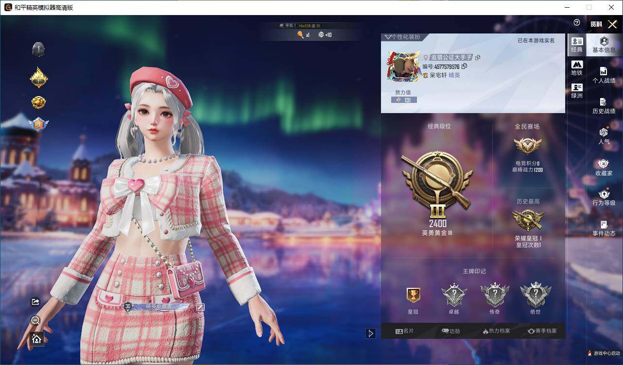 - [14616517]可二次【店主推荐捡漏号!可直接换绑】/素材身法号 安卓 手Q-7粉装-3特效枪-6载具-4粉色飞行器-6w热力值-7王牌印记-124套装-168枪皮【热门品类】:粉装-梦幻火箭,套装-深海小丑鱼,套装-小丑鱼,套装-浪漫波比【粉色载具】:特斯拉Roadster(水滴蓝),兰博基尼Aventador SVJ(翡翠绿),兰博基尼URUS(明艳黄),海龙奔腾,极速兔兔车,僚机-萌兔起飞【粉色套装】:粉装-梦幻火箭,粉装-甜梦冰蝶,粉装-暗夜玫瑰,粉装-齐天大圣,粉装-俏雪含霜,粉装-恐龙拽拽,粉装-幻影飞狐【粉色枪皮等级】:M416-风花雪月(七级),Kar98K-巳巳如意(五级),MK12-雪月幻音(一级)【粉色飞行器】:激战未来飞行器,星之彼岸飞行器,天之羽翼飞行器,闪光银龙飞行器