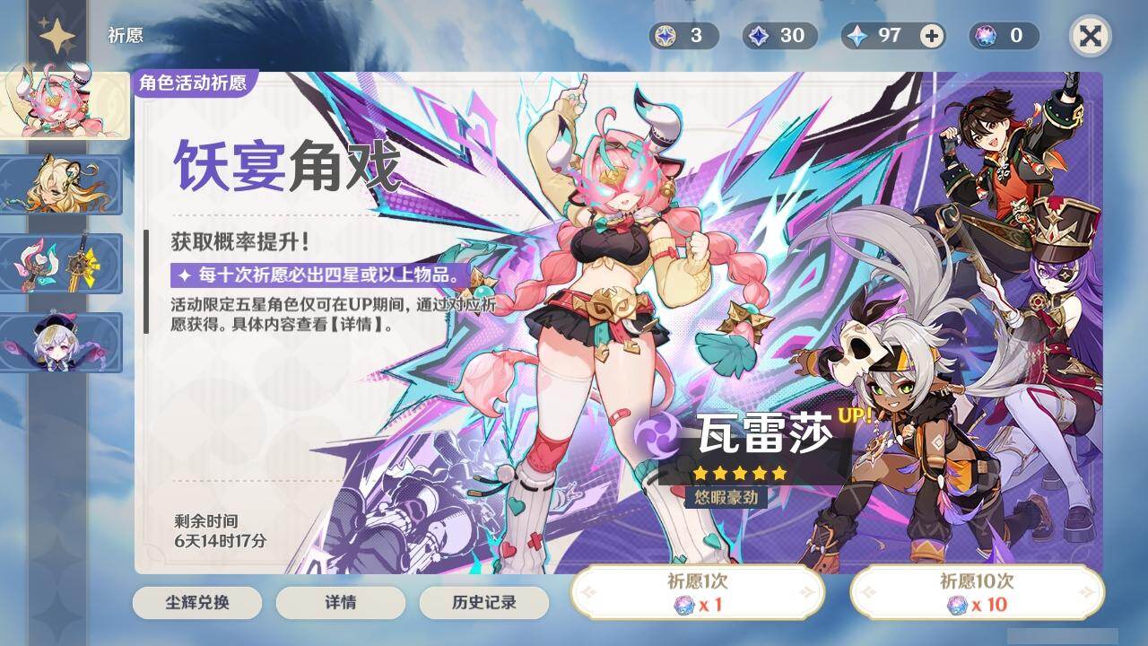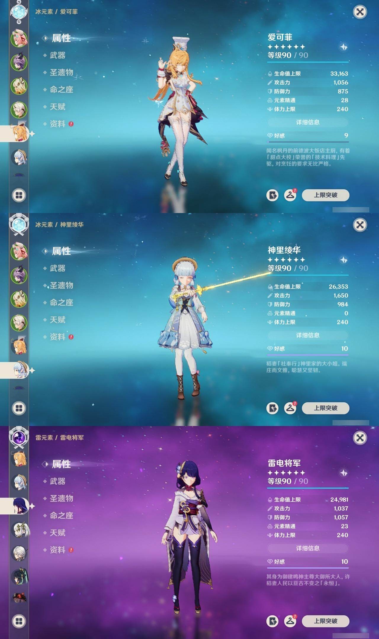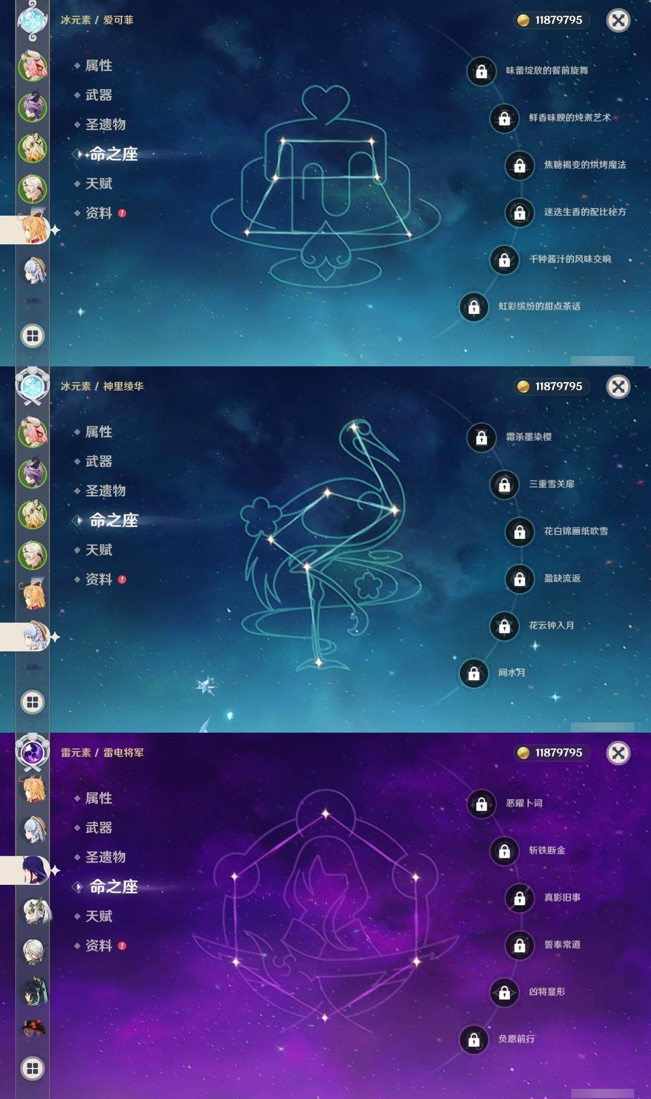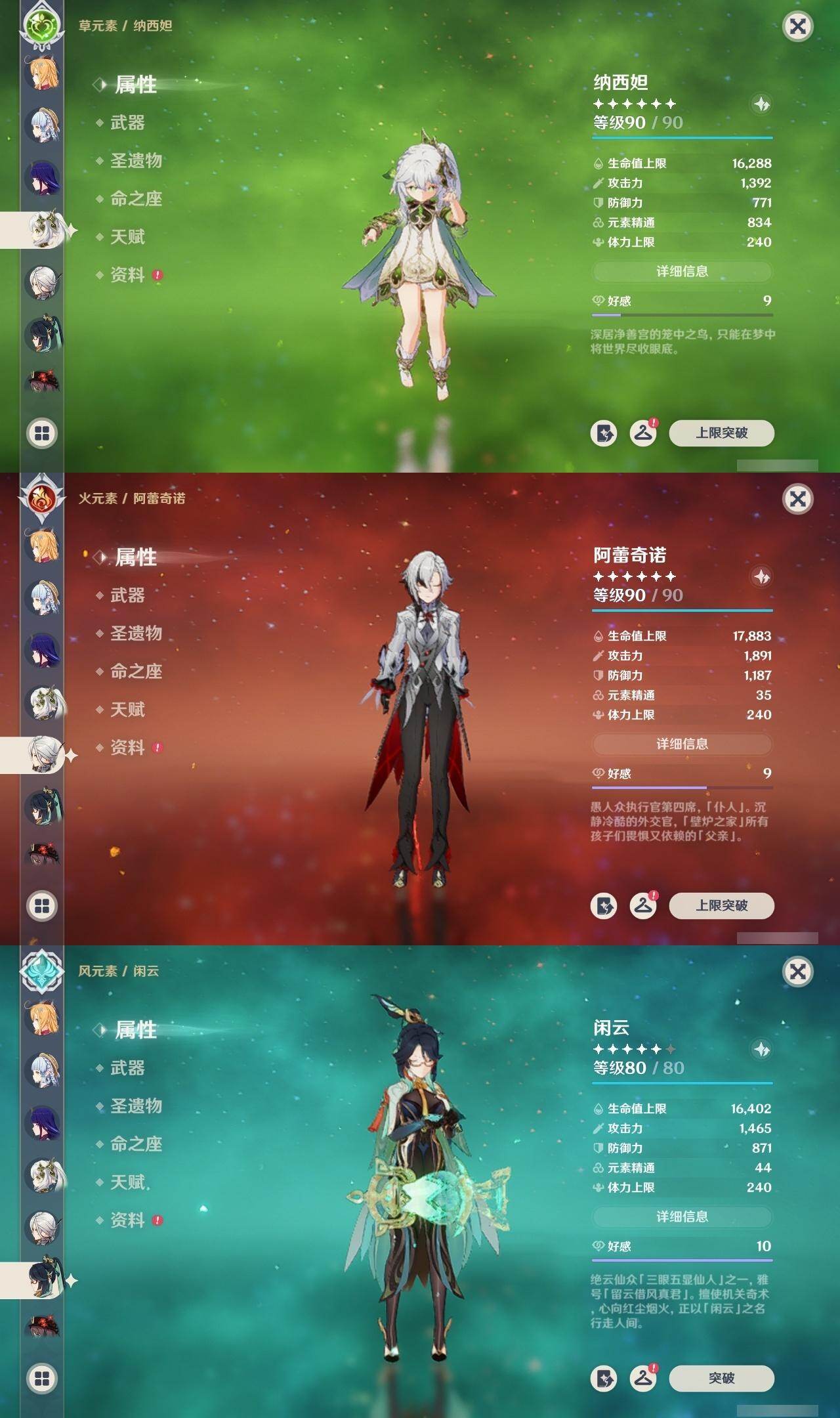 0命阿蕾奇诺,0命闲云,0命迪希雅,0命纳西妲,0命夜兰,0命雷电将军,0命神里绫华,0命胡桃,0命刻晴,1命七七,0命琴,1命莫娜,0命迪卢克,0命希诺宁,1命梦见月瑞希,0命瓦雷莎,0命爱可菲,0命丝柯克,0命杜林,精1裁断,精1千夜浮梦,精1四风原典,精1和璞鸢,精1风鹰剑