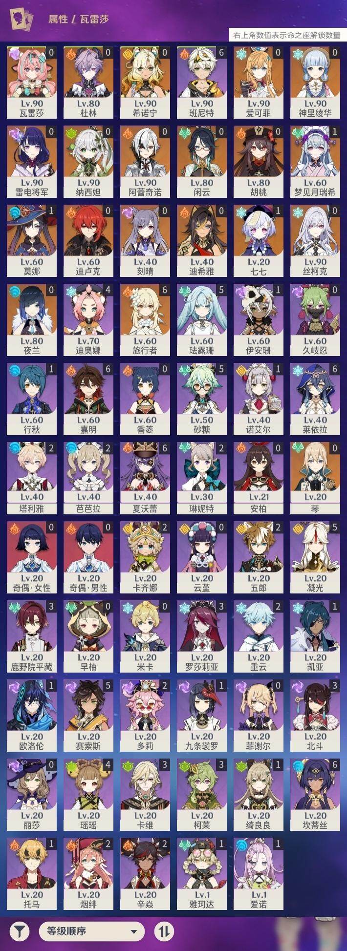 [15382038]【店主推荐捡漏号】57级/27黄/女主/19个五星角色/5个五星武器 0命阿蕾奇诺,0命闲云,0命迪希雅,0命纳西妲,0命夜兰,0命雷电将军,0命神里绫华,0命胡桃,0命刻晴,1命七七,0命琴,1命莫娜,0命迪卢克,0命希诺宁,1命梦见月瑞希,0命瓦雷莎,0命爱可菲,0命丝柯克,0命杜林,精1裁断,精1千夜浮梦,精1四风原典,精1和璞鸢,精1风鹰剑