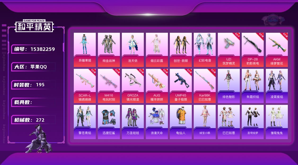[15382259]【特价出售/店主推荐】苹果 手Q-7粉装-9特效枪-0载具-6粉色飞行器-90118热力值-18王牌印记-195套装-272枪皮【热门品类】:套装-浪漫天命,套装-龟仙人【粉色套装】:粉装-绚金战神,角色-洛天依,角色-烟云彩露,套装-创世·救赎,粉装-幻彩电音,角色-异瞳寒姬【粉色枪皮等级】:AKM-绿萝繁花(五级),SCAR-L-锦绣绵绵(五级),M416-电玩时刻(五级),GROZA-镜光银凌(五级),AUG-暖羊咩咩(五级),UZI-筑梦精灵(七级),UMP45-量子极限(五级),Kar98K-巳巳如意(五级),DP-28-豹影疾电(五级)【粉色枪皮】:AKM-绿萝繁花,SCAR-L-锦绣绵绵,M416-电玩时刻,GROZA-镜光银凌,AUG-暖羊咩咩,UZI-筑梦精灵,UMP45-量子极限,Kar98K-巳巳如意,DP-28-豹影疾电【粉色飞行器】:萌物绒绒飞行器,冠军兔兔飞行器,御兔特攻飞行器,幻星舰长飞行器,时光之吻飞行器