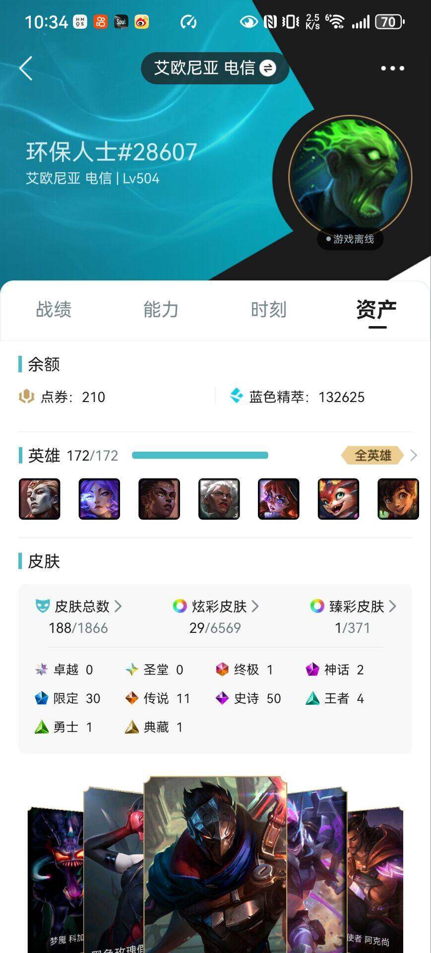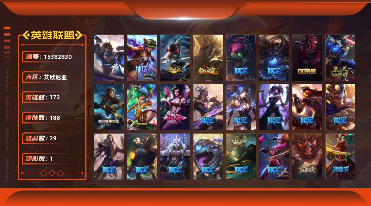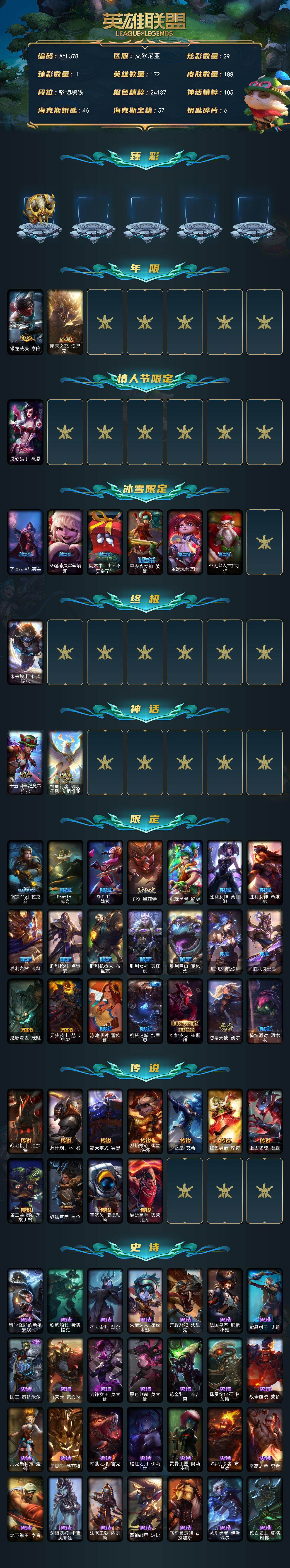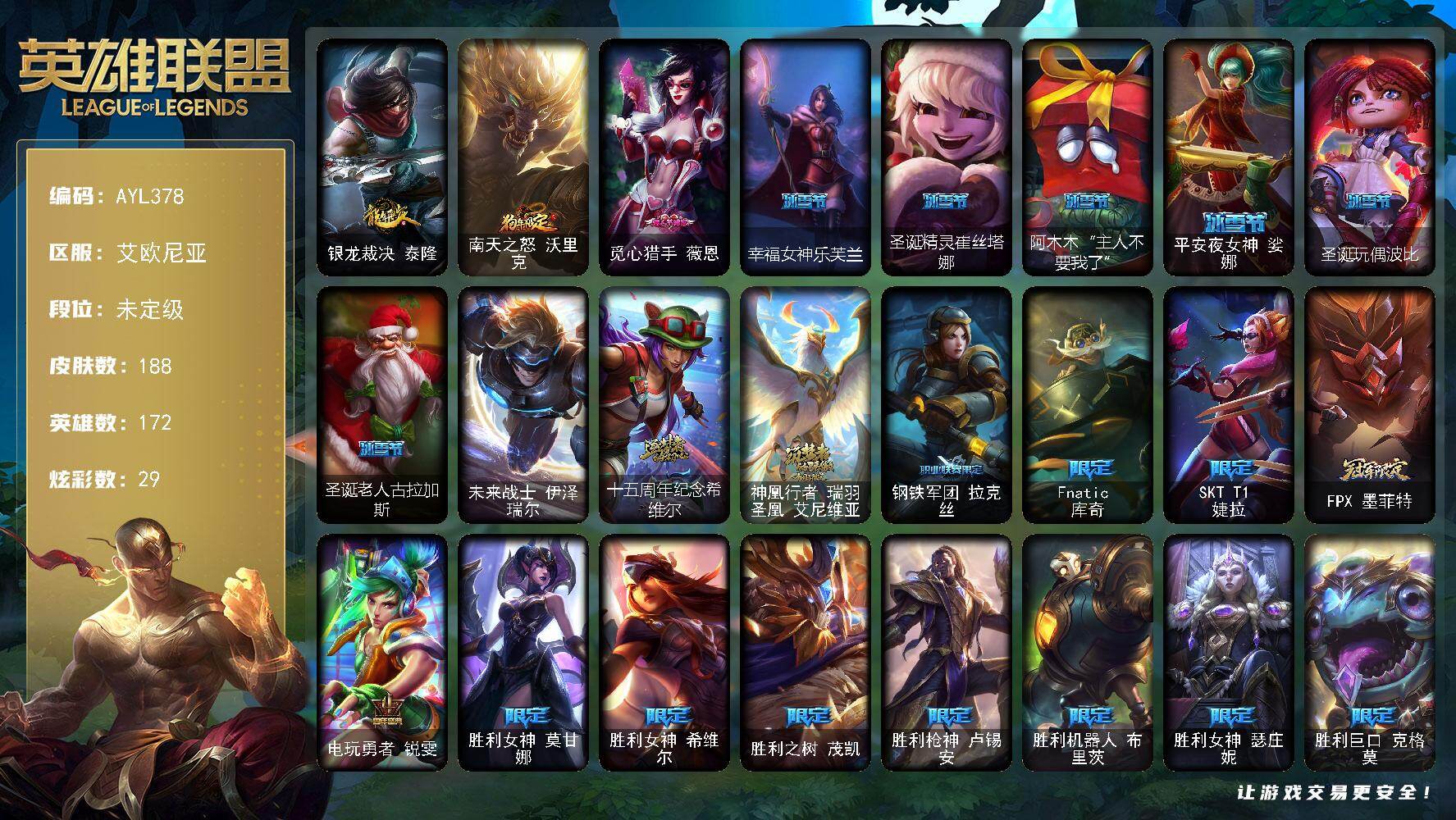 [15382830]可二次【特价出售/店主推荐】未定级段位-172英雄-188皮肤-29炫彩-1终极-2神话-30限定-11传说-50史诗