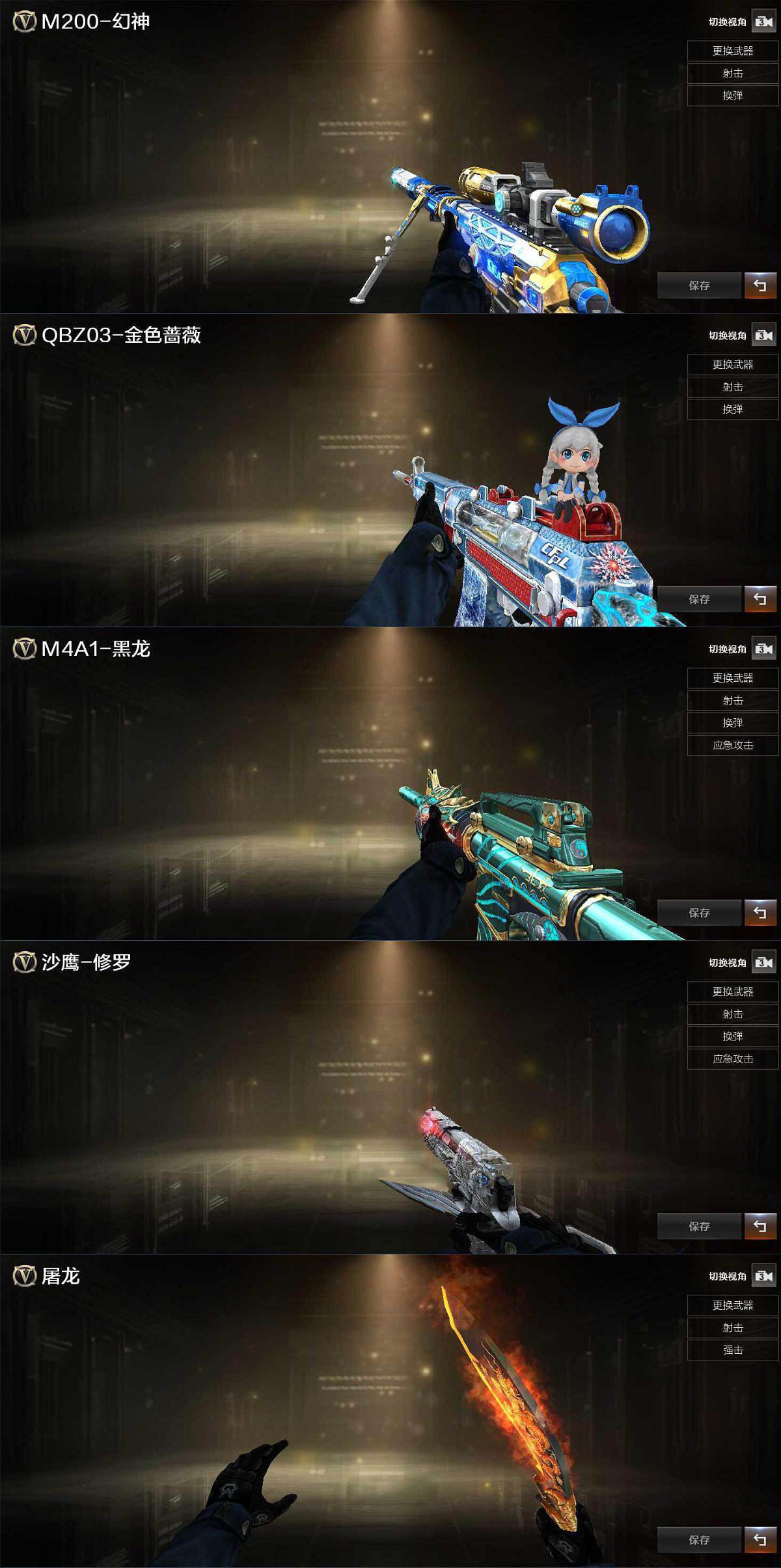【皮肤】:幻神-冠军之幻,QBZ03-金色蔷薇-拼搏,黑龙-墨子皮肤,修罗-星空,屠龙-星火燎原