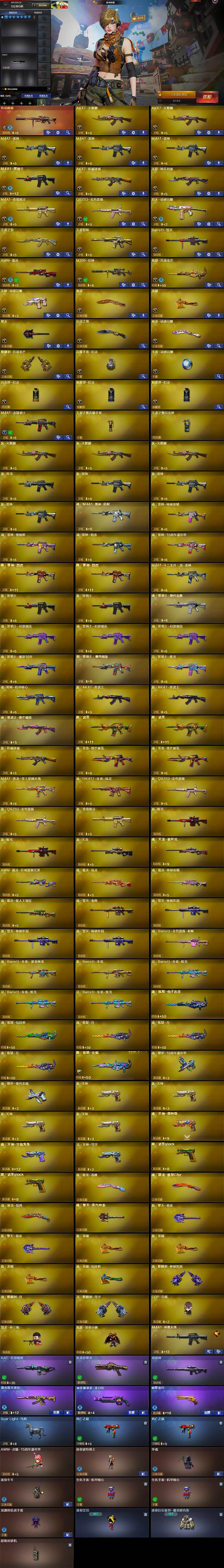 - [15657883]北方大区-47V-3王者-0炫金 【热门武器】:QBZ03-金色蔷薇,M200-竞技荣光,Kar98K-星神*2 【王者炫金武器】:王者之心 【音效卡】:AN94-超新星-热带奇洋音效卡,Kar98K-星神音效卡,Barrett-碧霄极光音效卡*2 【皮肤】:星神-漫游,火麒麟-平天大圣,毁灭-星耀 皮肤,炼狱-星空,屠龙-星耀 皮肤,轻型军用手斧-再燃火线 【角色】:电竞教官-云悠悠,奇洋探员,乔伊教练,修道士,云海玲珑,暗夜-X,电竞少女,飞虎队-X,风暴女,嘉年华灵狐,灵狐者-X,萌儿,潘多拉-甜心教官,潜龙队-X,蛇姬,斯沃特-X,五号兵器-赛博朋克,新娜塔莎,雪莉杨,樱-战斗天使,影武者-X,游珑儿 【人偶武器】:迷你钢铁终结者,AWM-灵狐-15周年嘉年华*2,迷你深渊冰龙,迷你生化手雷,生化手雷-机甲核心,迷你超能女侍 【英雄级武器】:AK47-火麒麟,M4A1-雷神,AN94-超新星,无影-神兵利器,黑武士-锦绣游龙,超新星-热带奇洋,QBZ03-独角-IV,QBZ03-金色蔷薇,王者之魄-觉醒版,Barrett-毁灭,Kar98K-星神*2,M200-竞技荣光,柯尔特-竞技荣光,屠龙*2,擎天-竞技荣光*4,龙啸-热带奇洋,斩神刀-雷暴,麒麟刺-百战金芒,高爆手雷-雷暴,高爆手雷-竞技荣光*4,高爆手雷-云龙,手雷-热带奇洋,闪光弹-雷暴,闪光弹-竞技荣光*5,闪光弹-云龙,烟雾弹-雷暴,烟雾弹-竞技荣光*5,烟雾弹-云龙,M4A1-赤狱骑士 【道具】:古蛇迷踪炫彩背包,奇洋探员-海龟背包,女皇终结者-背包,热带奇洋炫彩背包,超级背包,雪域霜狐炫彩背包,女皇终结者-魔龙之吻,救世主-黑桃战神,绿色巨人,灵魂忍者*2,变异宝贝,迷雾幽灵*2,生化弹匣,夺命之镰,防化服*3,金色流光-枪王排位*2,星辰流光-枪王排位,流光-鎏金之域,流光-再燃火线,枪王排位28赛季金色流光,枪王排位29赛季金色流光,电玩兔兔表情,热带奇洋表情,动感闪耀表情*2,云海游龙表情,防弹头盔*5,防弹衣*5,C4工具钳*5,手雷包*5 【特殊枪械】: