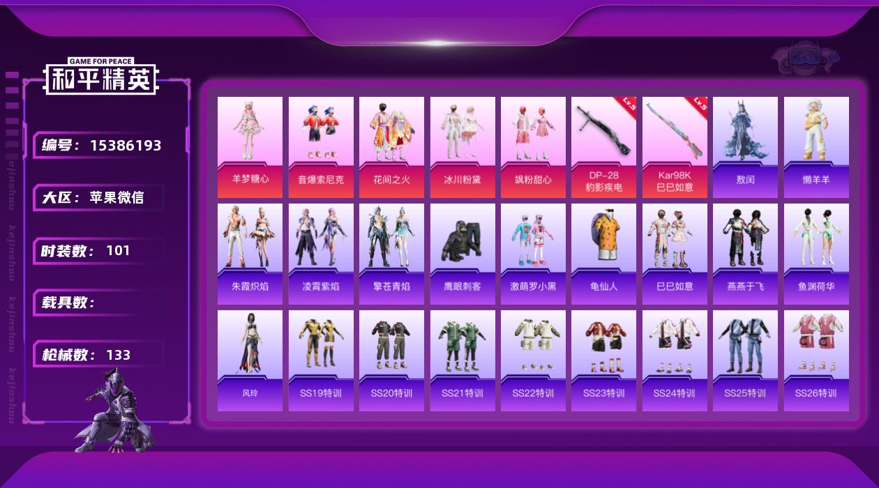 [15386193]连体王者cf手游苹果 微信-5粉装-2特效枪-0载具-2粉色飞行器-39137热力值-8王牌印记-101套装-133枪皮