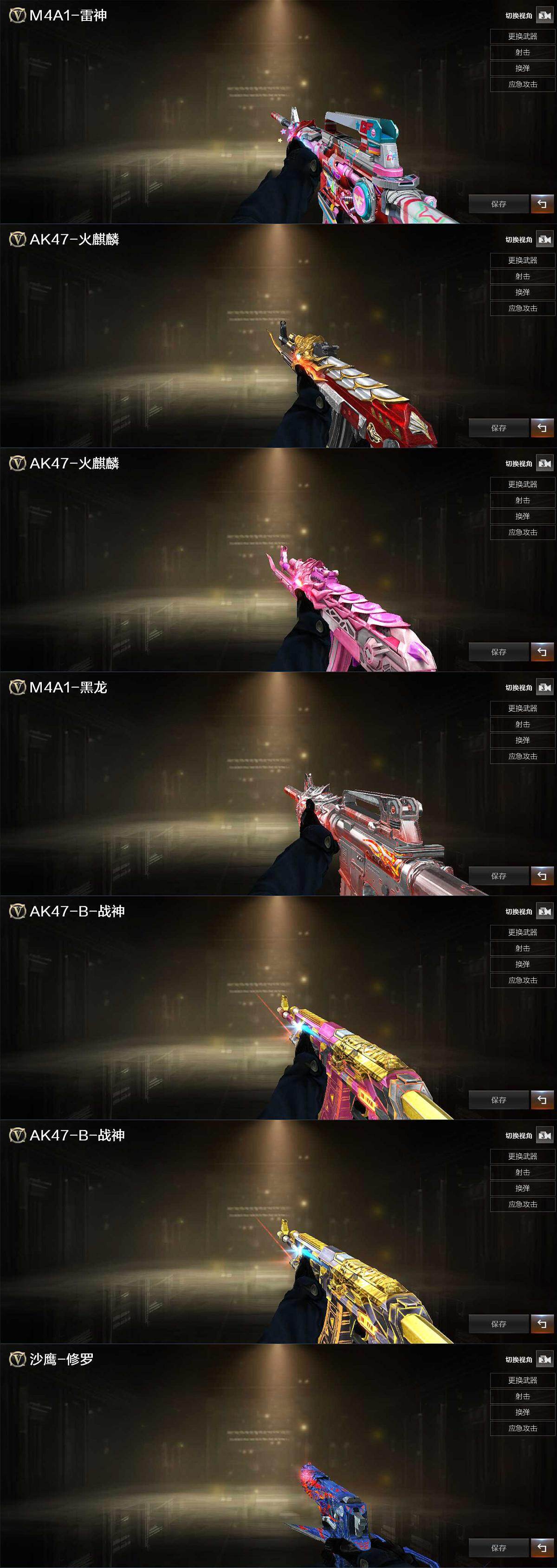 【皮肤】:雷神-15周年嘉年华 皮肤,火麒麟-华夏之心,火麒麟-心动糖果,黑龙-暗月,战神-粉色甜心皮肤,战神-流金岁月皮肤,AK47-B-常胜将军-曹操,AK47-B-常胜将军-刘备,AK47-B-常胜将军-孙权*2,修罗-能量核心