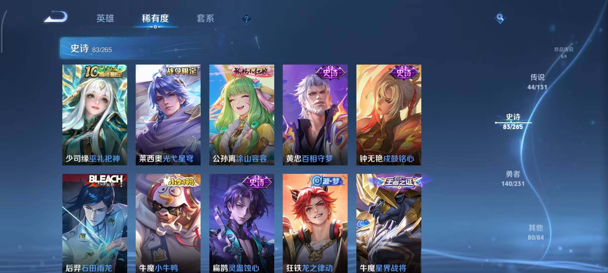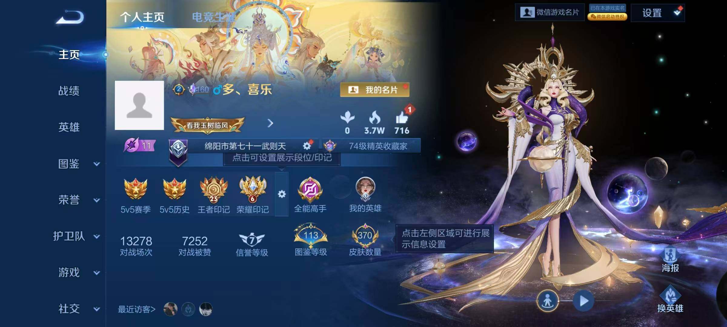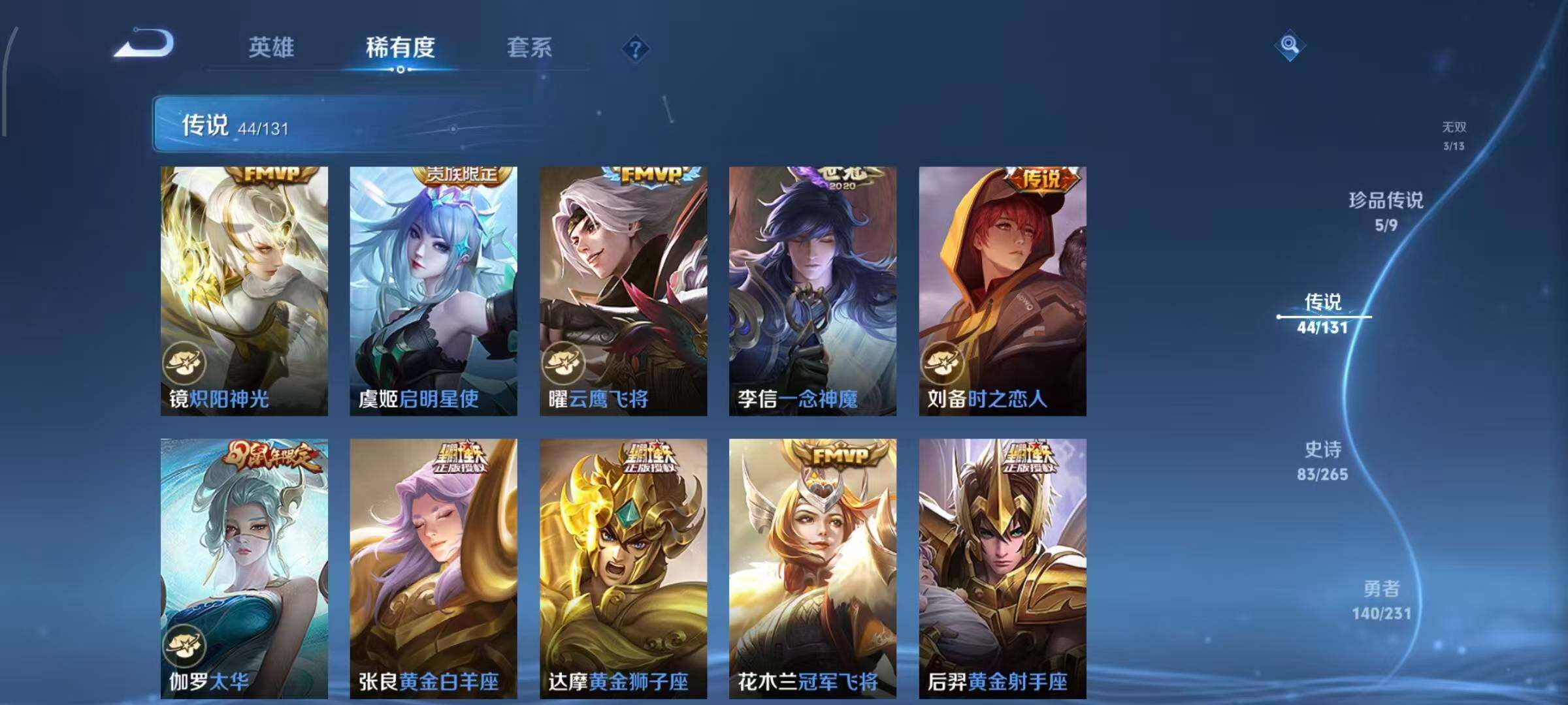 [15390078]安卓WX-V10-最强王者段位-128英雄-370皮肤-16典藏-3无双-5珍品传说-44传说-83史诗-3星传