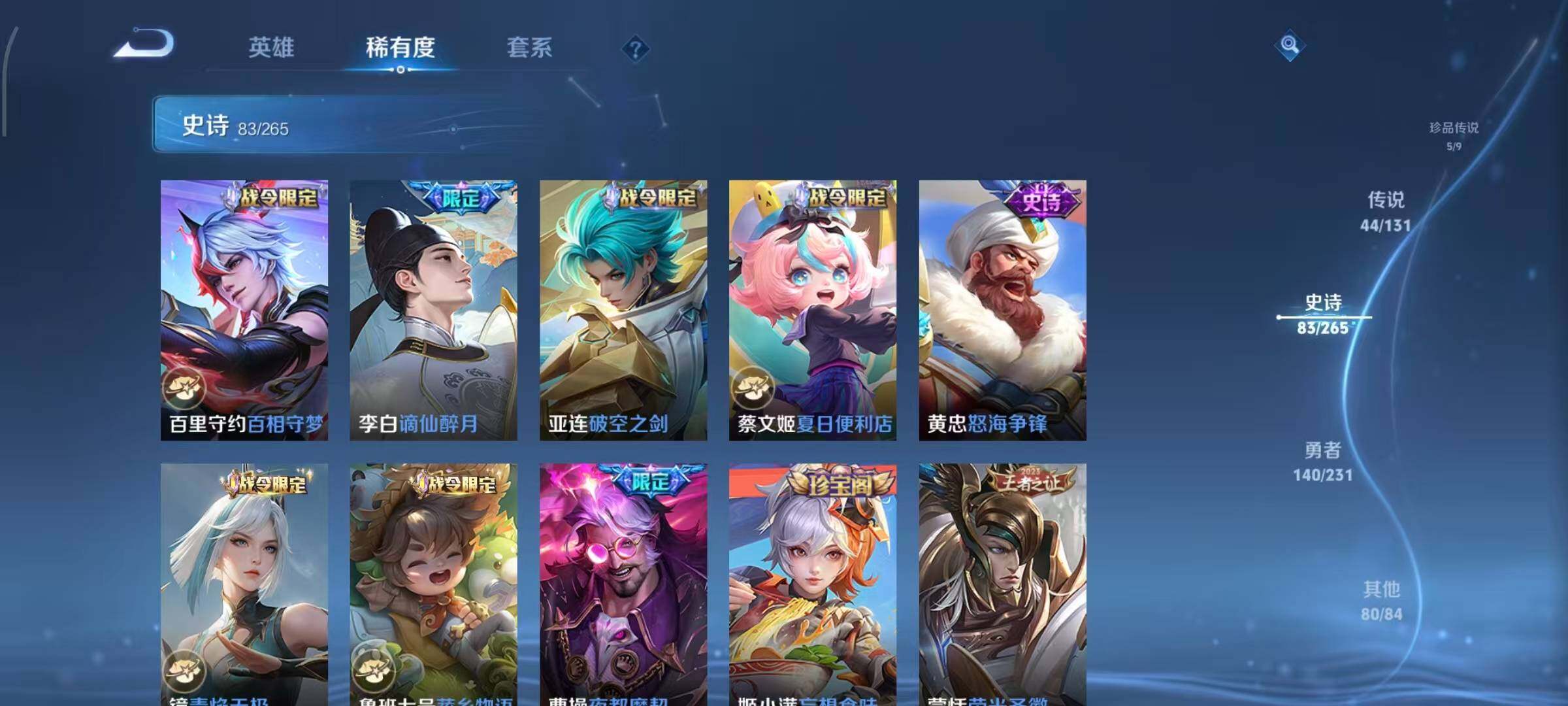 - [15154354]【店主推荐捡漏号!可直接换绑】安卓Q-V6-最强王者段位-125英雄-303皮肤-2典藏-4珍品传说-13传说-89史诗 【英雄全皮】:鬼谷子全皮,鲁班大师全皮,蒙恬全皮,空空儿全皮,影全皮 【荣耀典藏】:孙悟空全息碎影,韩信弑枪猎影 【珍品传说】:马可波罗怪盗基德,孙策时之奇旅,暃朽木白哉,宫本武藏黑崎一护 【传说皮肤】:后羿神树通天,桑启鸣野蒿,赵云淬星耀世,西施游龙清影,镜炽阳神光,虞姬启明星使,曜云鹰飞将,干将莫邪久胜战神,虞姬云霓雀翎,后羿黄金射手座,孙尚香末日机甲,孙悟空地狱火,狄仁杰超时空战士 【限定皮肤】:白起狰,蔡文姬夏日便利店,虞姬夏日便利店,姜子牙天穹之誓,狄仁杰阴阳师,虞姬凯尔特女王,赵云皇家上将,钟无艳超时空战士,孙膑妖精王,扁鹊炼金王,元歌云间偶戏,元歌无心,夏侯惇匿光决锋者,甄姬落雪兰心,典韦穷奇,马可波罗暗影游猎,马可波罗山海玄木吟,狄仁杰魔术师,狄仁杰万华元夜,达摩沙漠行僧,项羽海滩派对,老夫子醍醐杖,程咬金演武夺筹,刘邦夺宝奇兵,王昭君午后时光,兰陵王金庭之子,亚瑟潮玩骑士王,孙悟空大圣娶亲,刘备百相守梦,李元芳云中旅人,虞姬启明星使,钟馗驱傩正仪,杨戬潮玩骑兵,干将莫邪胡桃夹子,雅典娜单词大作战,鬼谷子原初探秘者,鬼谷子五谷丰年,铠青龙志,苏烈千军破阵,百里玄策原初追逐者,弈星混沌棋,沈梦溪大漠名商,明世隐疑决卦,裴擒虎李小龙,裴擒虎擒涛扼浪,狂铁电玩高手,云中君纤云弄巧,猪八戒西部大镖客,上官婉儿梁祝,嫦娥暖冬兔眠,蒙犽狂想玩偶喵,鲁班大师匿光启智者,鲁班大师探海日志,桑启海盐诗旅,暃星界游侠,艾琳女武神,阿古朵江河有灵,张良古海寻踪,蒙犽百解令,蒙恬荣光圣徽,鬼谷子天穹祈灯,姬小满妄想食味,刘邦剑破天穹,程咬金群星魔术团,周瑜熔金海岸 【年限皮肤】:铠青龙志,马可波罗山海玄木吟 【赛季限定】:孙膑妖精王,扁鹊炼金王,白起狰,典韦穷奇,狄仁杰万华元夜,达摩沙漠行僧,老夫子醍醐杖,程咬金演武夺筹,兰陵王金庭之子,张良古海寻踪,李元芳云中旅人,虞姬凯尔特女王,钟馗驱傩正仪,鬼谷子原初探秘者,苏烈千军破阵,百里玄策原初追逐者,弈星混沌棋,沈梦溪大漠名商,明世隐疑决卦,裴擒虎擒涛扼浪,鲁班大师探海日志,桑启海盐诗旅,鬼谷子天穹祈灯,蒙恬荣光圣徽,刘邦剑破天穹,姜子牙天穹之誓 【战令限定】:蔡文姬夏日便利店,虞姬夏日便利店,钟无艳超时