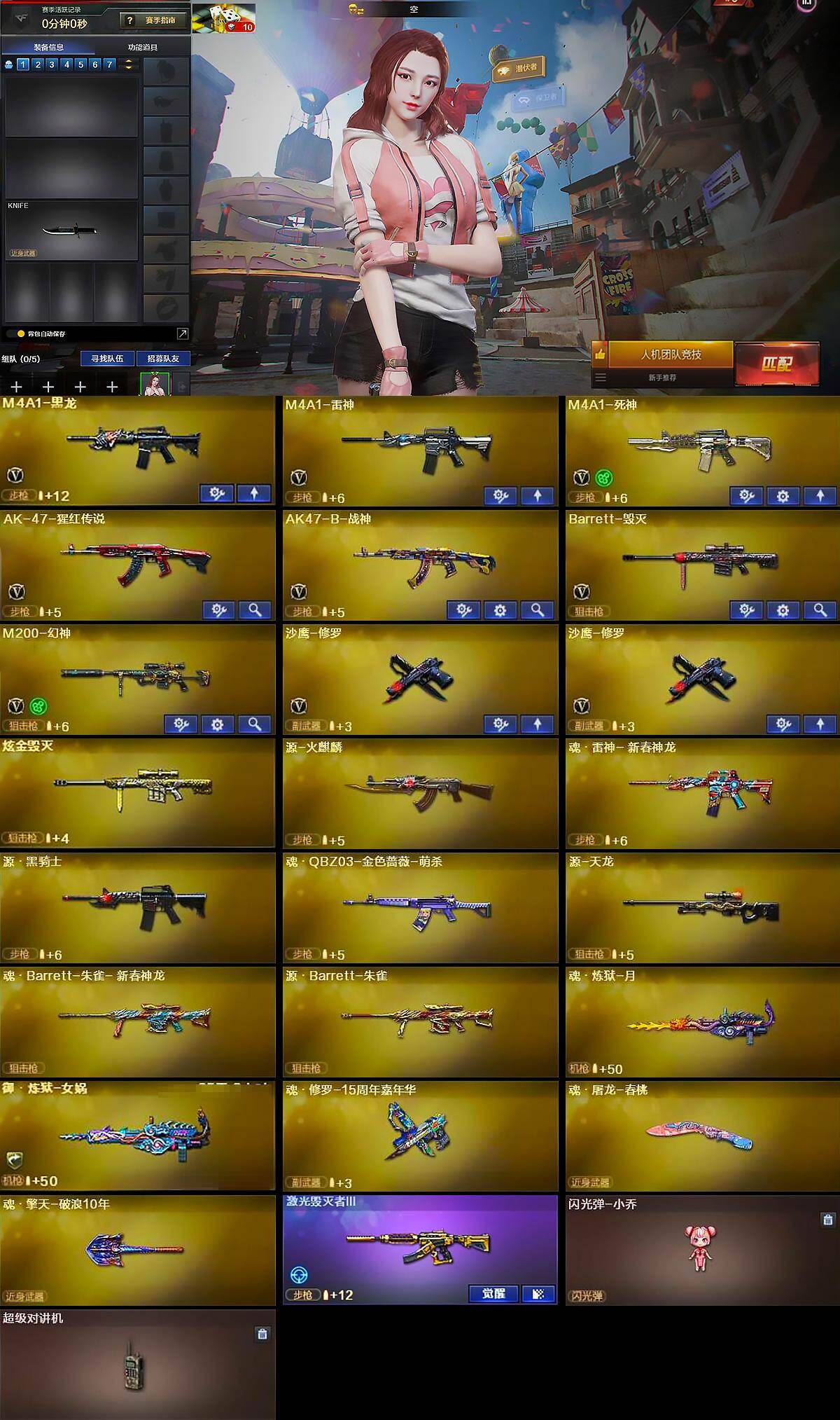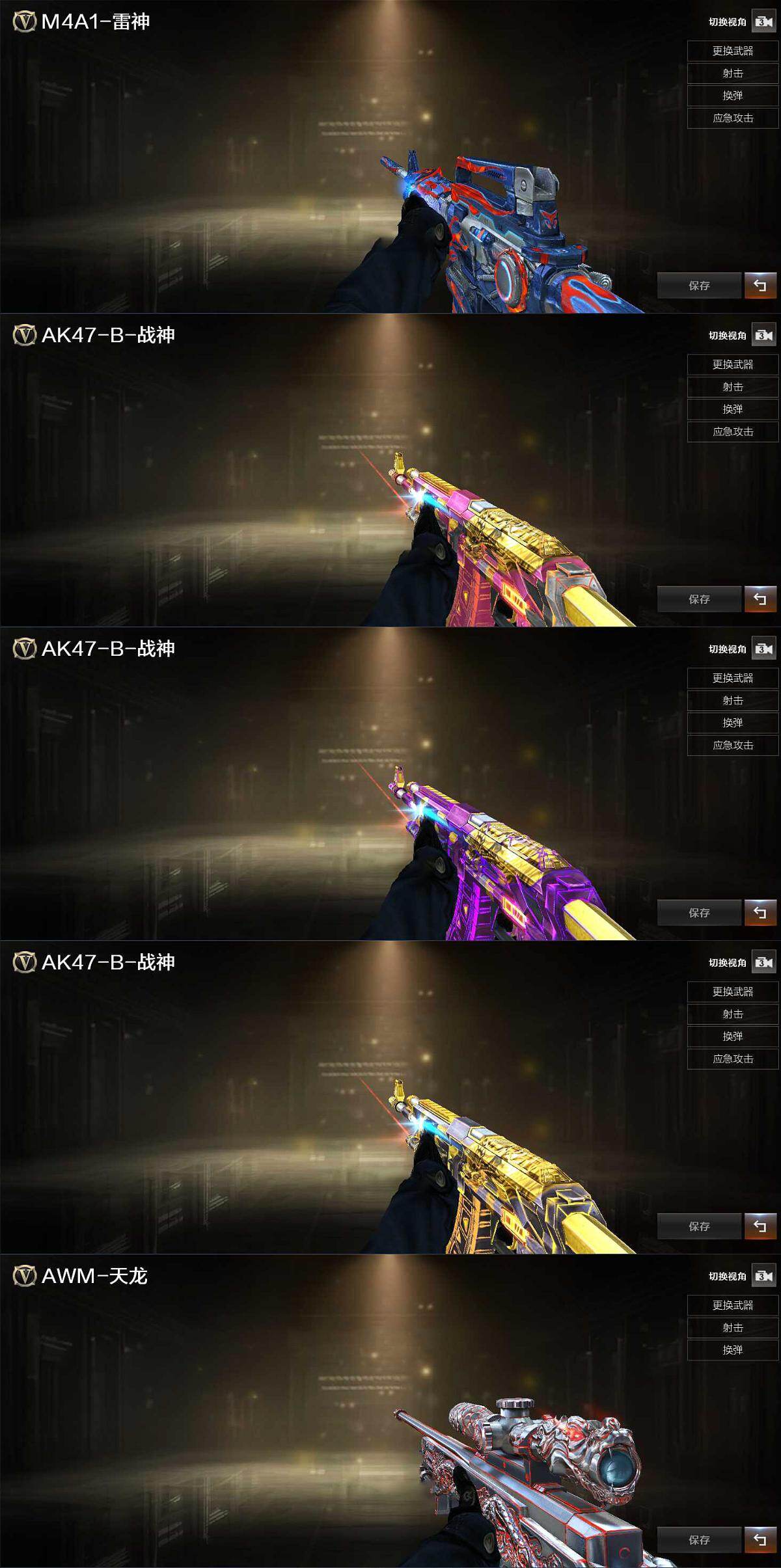 【英雄级武器】:M4A1-黑龙,M4A1-雷神,M4A1-死神,AK-47-猩红传说,AK47-B-战神,Barrett-毁灭,M200-幻神,沙鹰-修罗*2