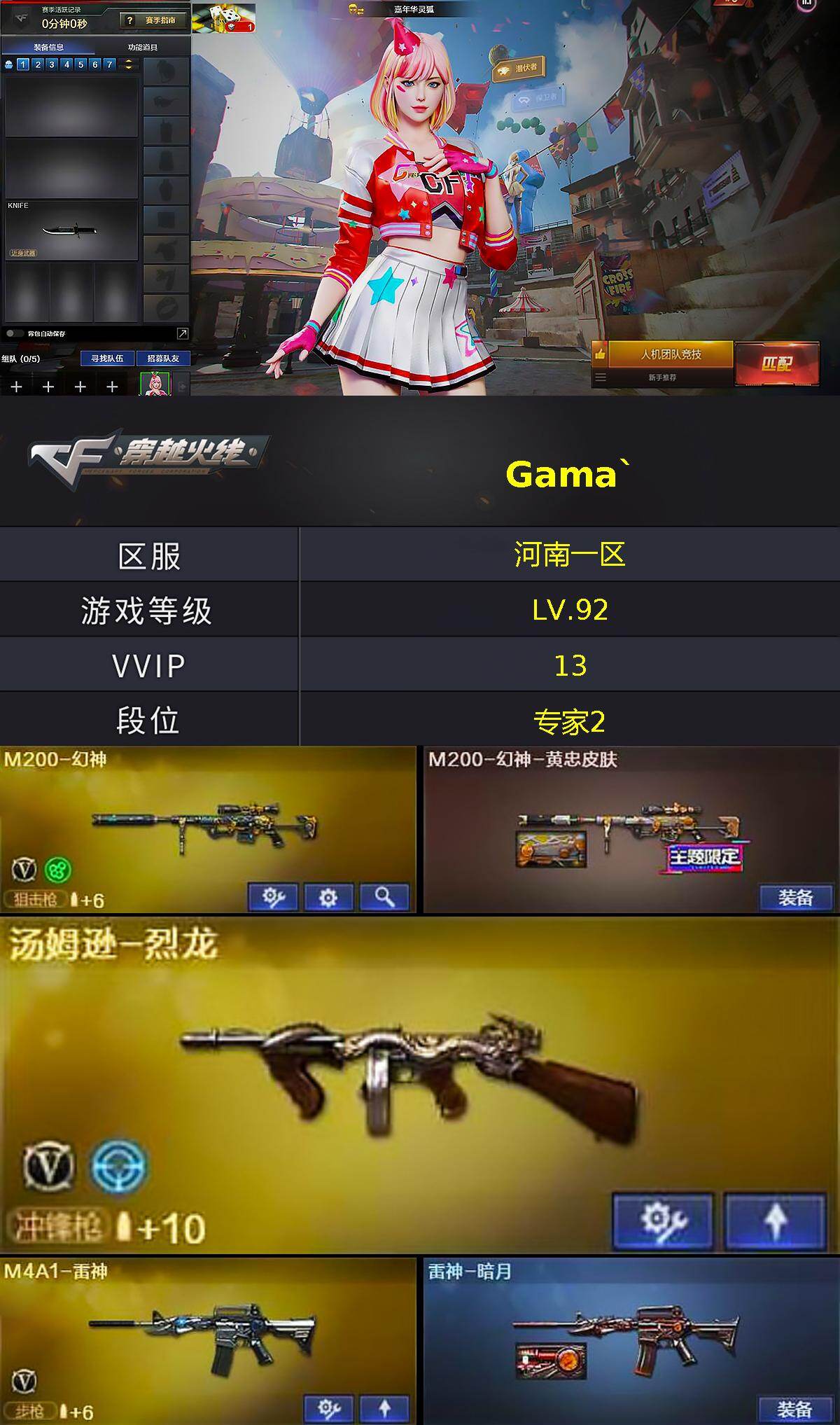 [15393646]河南一区-13V-0王者-0炫金 【热门武器】:M200-幻神,死亡之眼,M4A1-黑骑士,汤姆逊-烈龙,沙鹰-修罗 【皮肤】:M200-幻神-黄忠皮肤,雷神-暗月,毁灭-暗月,黑龙-能量核心,黑骑士-暗月,无影-能量核心,死神-秘银,天龙-秘银,修罗-能量核心*2,天神-暗月 【角色】:嘉年华灵狐,潘多拉-X,青霞仙子 【人偶武器】:AWM-灵狐-15周年嘉年华 【暴走生化】:死亡之眼 【挑战大师】:神圣爆裂者-末日III 【英雄级武器】:M4A1-雷神,M4A1-黑骑士,AK47-无影,无影-神兵利器,Barrett-毁灭,M200-幻神,汤姆逊-烈龙,沙鹰-修罗,屠龙,龙啸,擎天,麒麟刺*2 【道具】:EP战队炫彩背包,战舰背包,绿色巨人,灵魂忍者,迷雾幽灵,夺命之镰,防化服*2,金色流光-枪王排位,防弹头盔*3,防弹衣*3,C4工具钳*2,手雷包*2 【特殊枪械】:1黑骑士,1烈龙