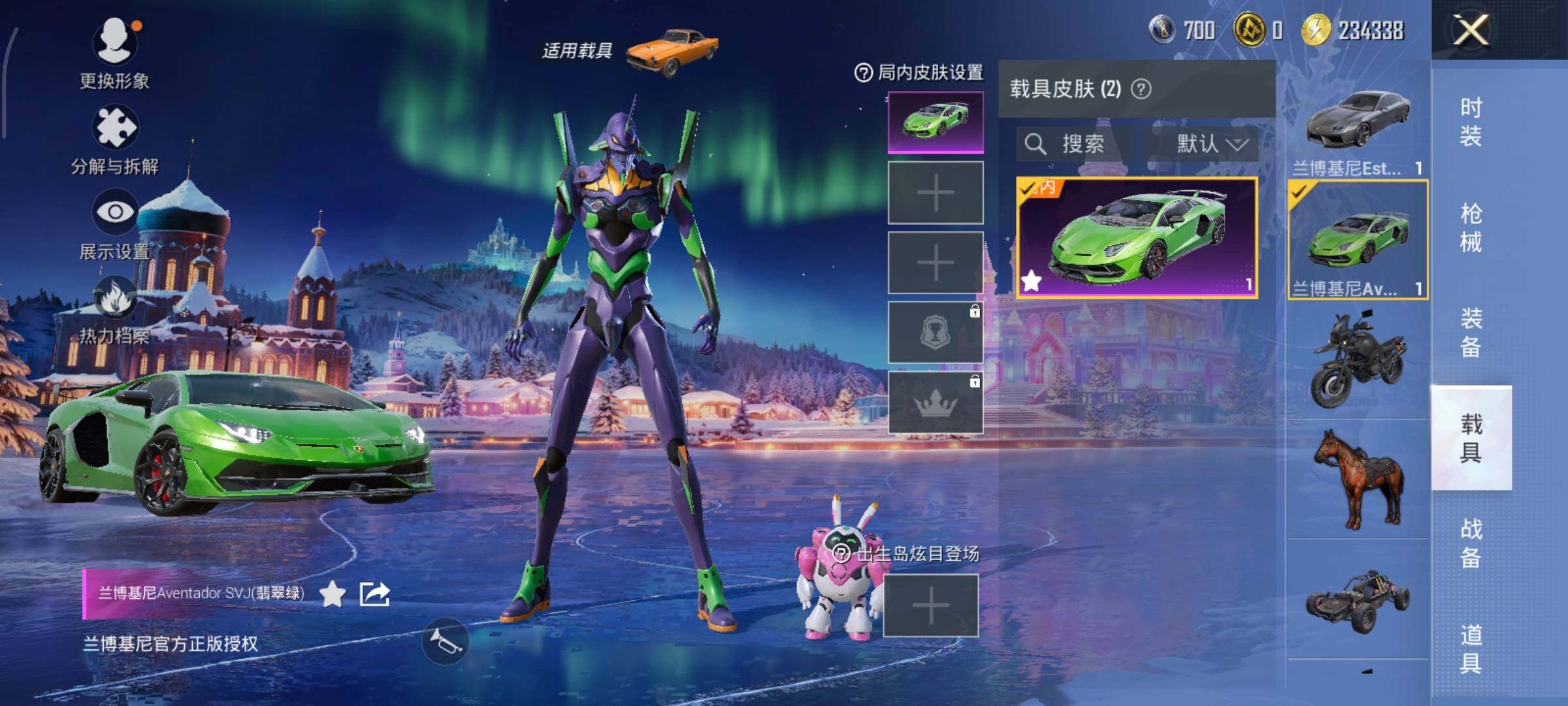 【粉色载具】:兰博基尼Aventador SVJ(翡翠绿),兰博基尼Estoque(银翼灰)
